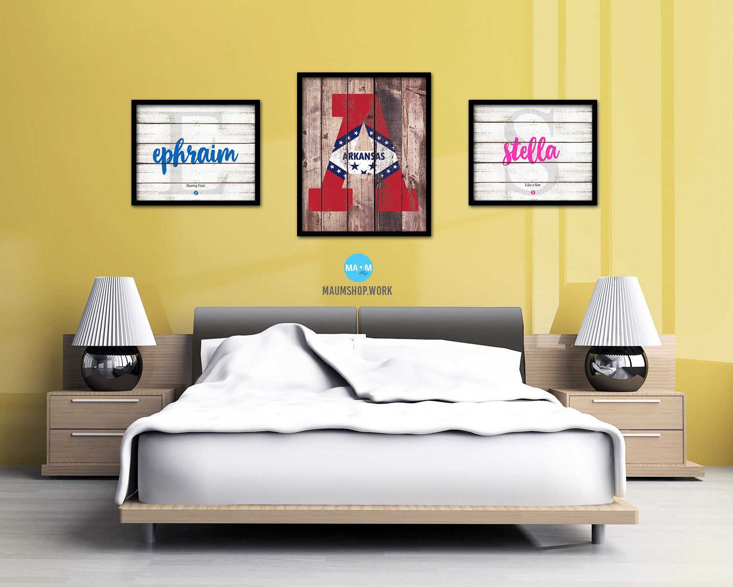 Arkansas State Initial Flag Wood Framed Paper Print Decor Wall Art Gifts, Wood