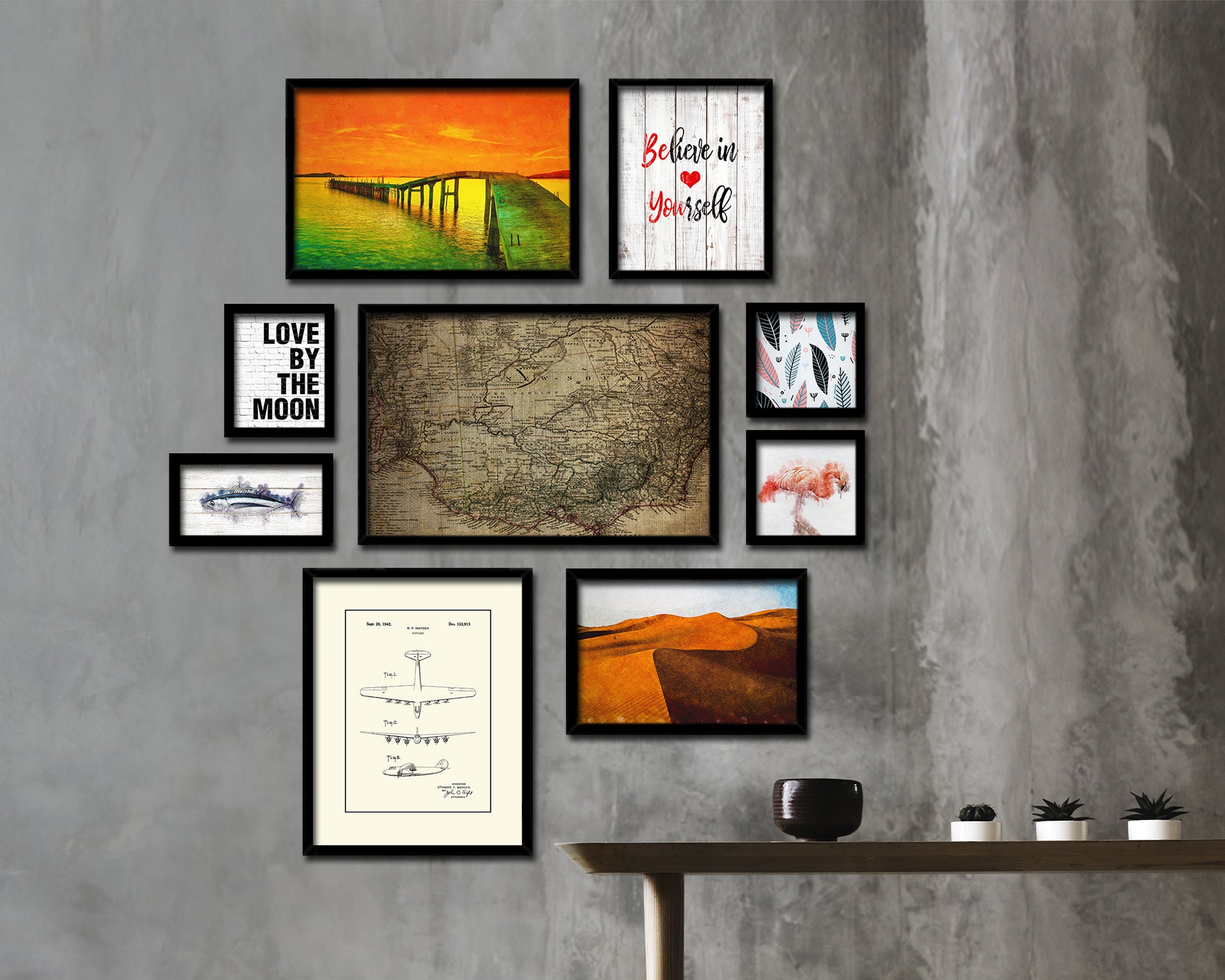Australia Vintage Map Framed Print Art Wall Decor Gifts