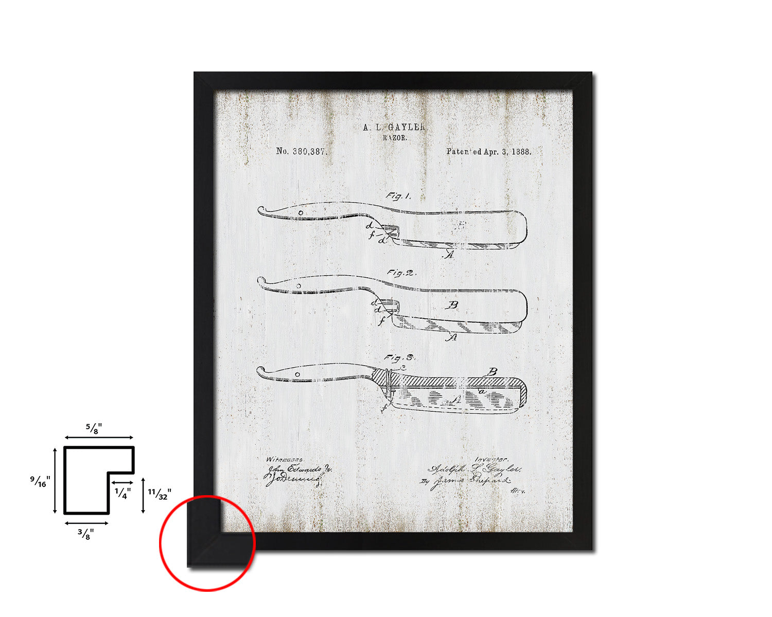 Razor Barbershop Vintage Patent Artwork Black Frame Print Wall Art Decor Gifts