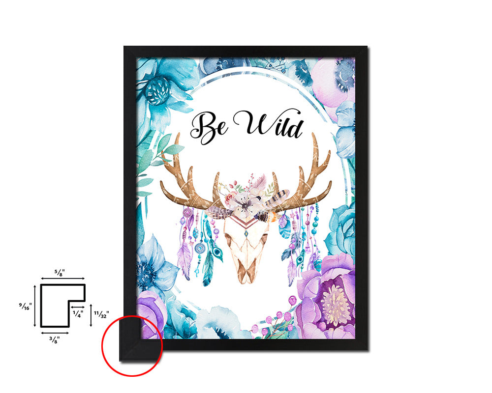 Be Wild Quote Boho Flower Framed Print Wall Decor Art