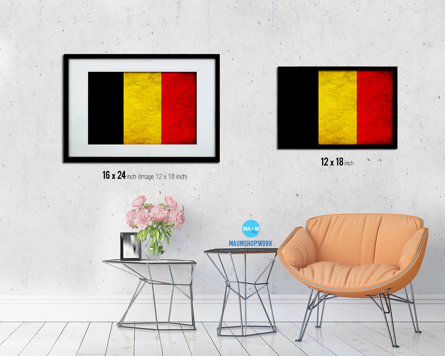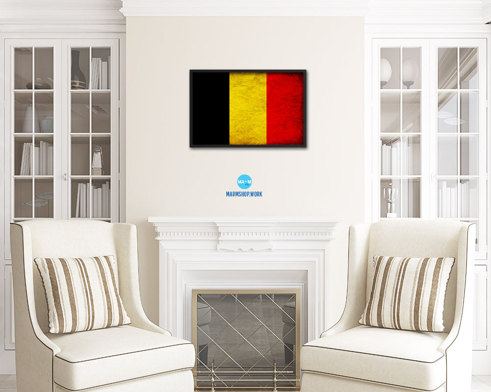 Belgium Country Vintage Flag Wood Framed Print Wall Art Decor Gifts