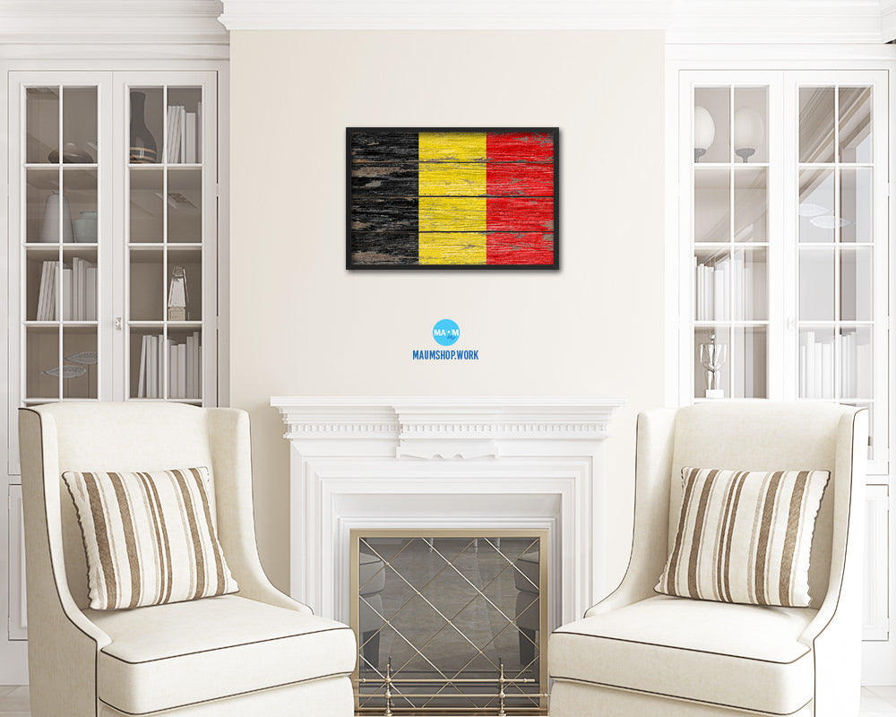 Belgium Country Wood Rustic National Flag Wood Framed Print Wall Art Decor Gifts