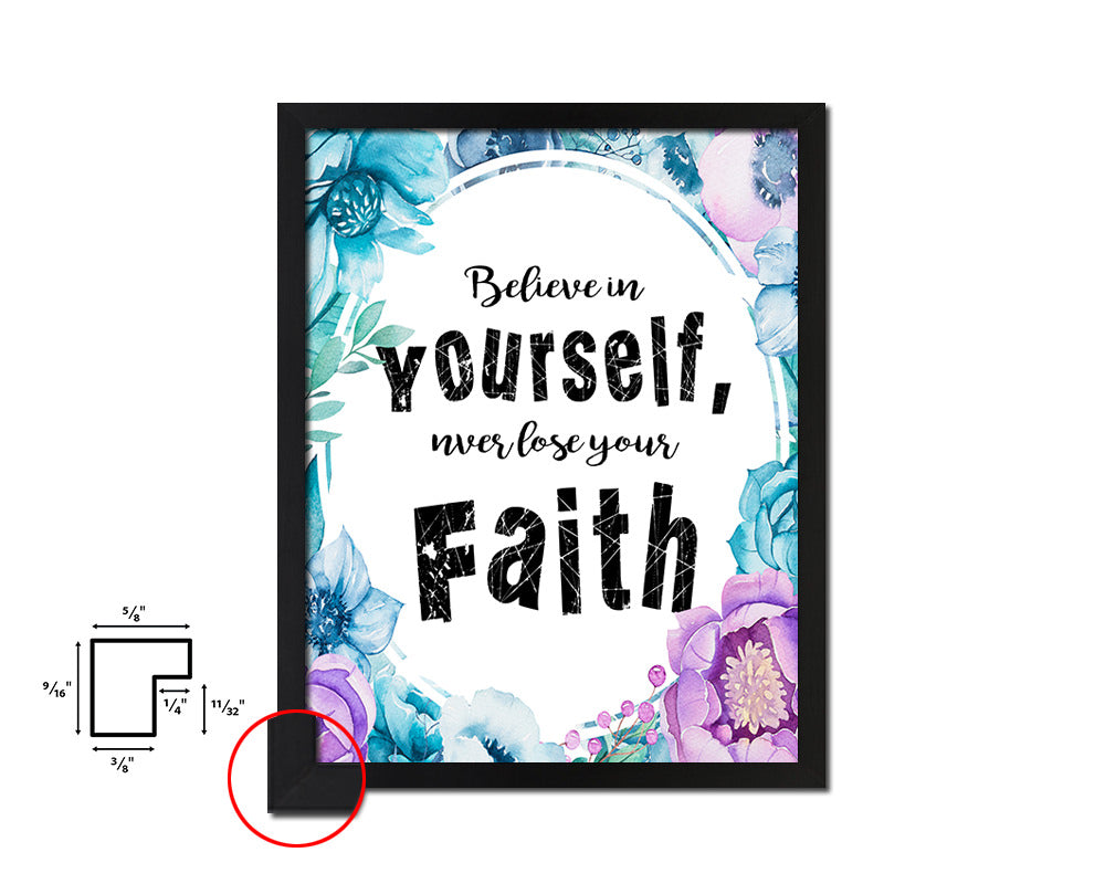 Believe in yourself never lose your faith Quote Boho Flower Framed Print Wall Decor Art