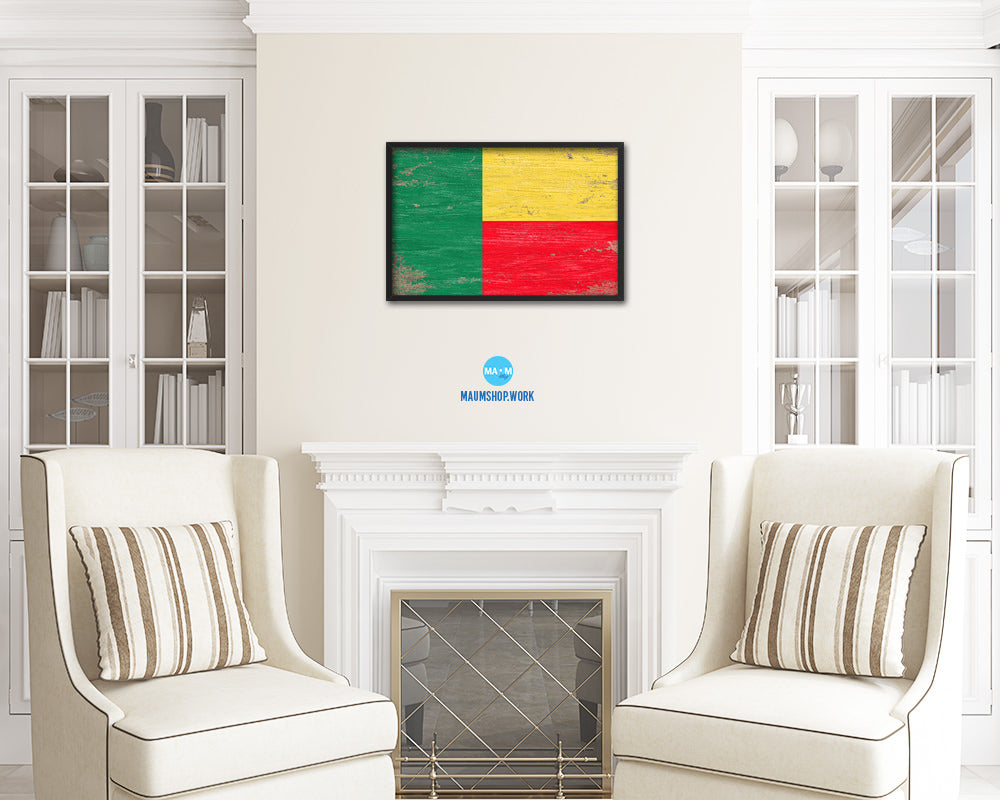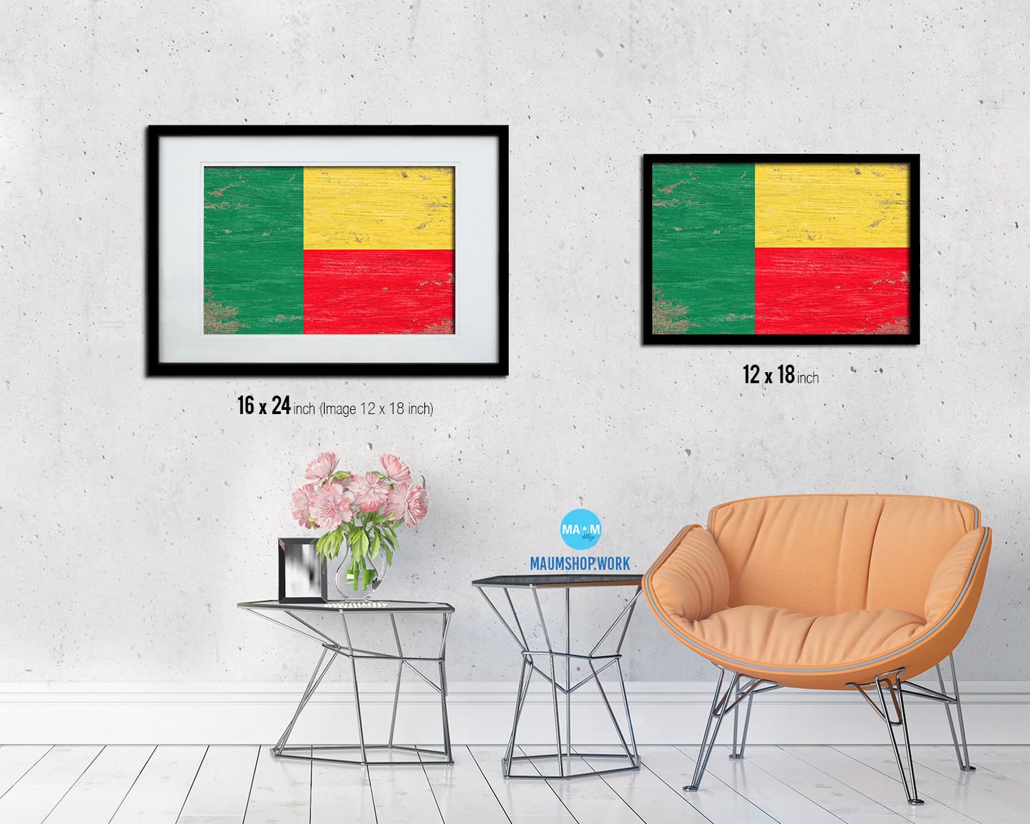 Benin Shabby Chic Country Flag Wood Framed Print Wall Art Decor Gifts
