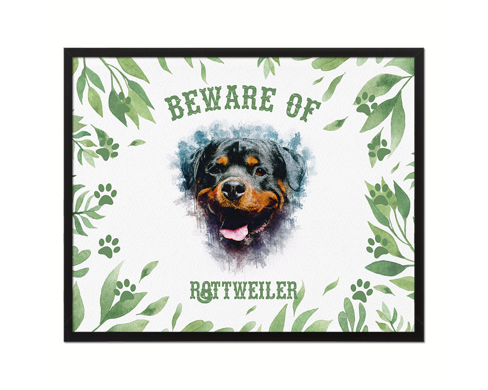 Beware of Pug Sign Wood Framed Print Wall Art Decor Gifts