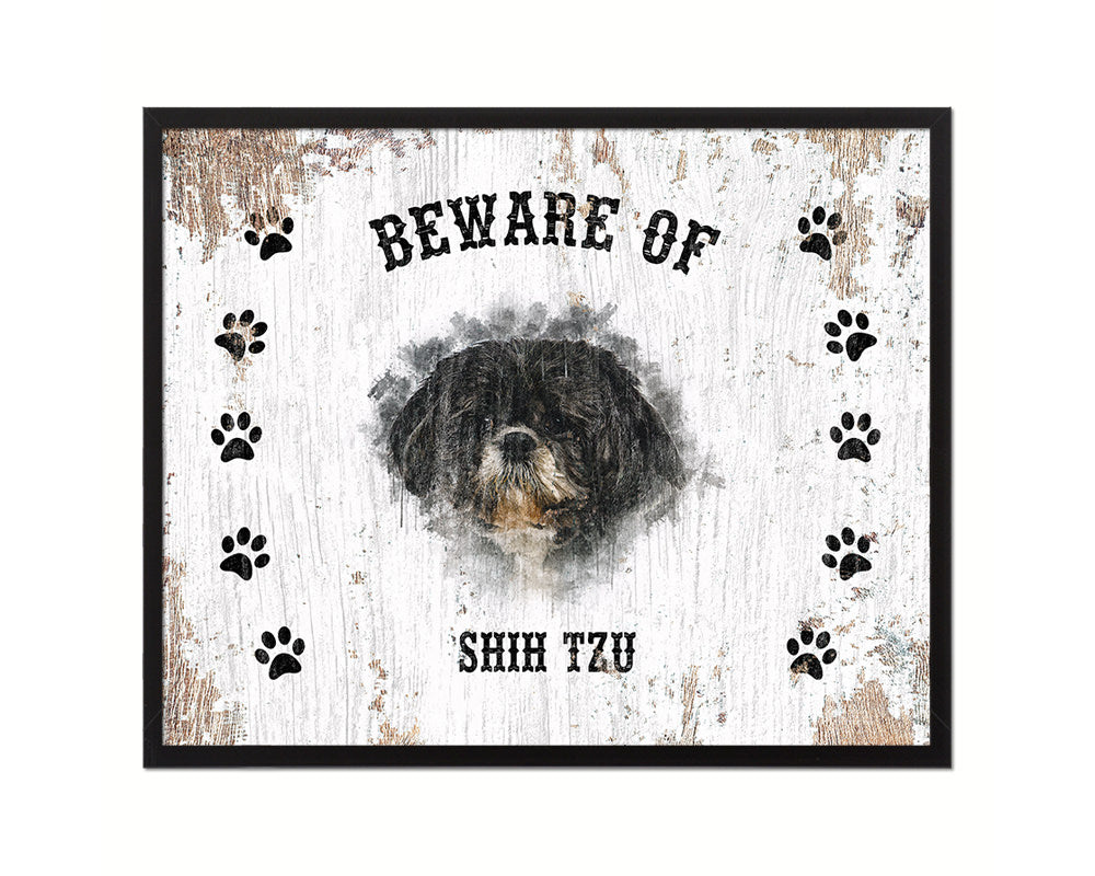 Beware of Russell Terrier Sign Wood Framed Print Wall Art Decor Gifts