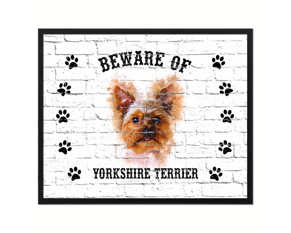 Beware of Russell Terrier Sign Wood Framed Print Wall Art Decor Gifts