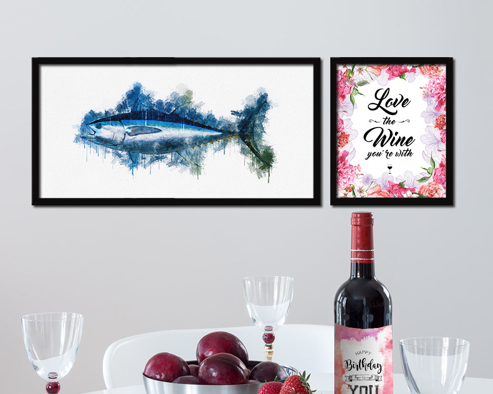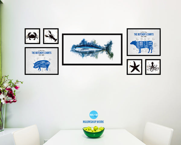 Bigeye Fish Art Wood Frame Modern Restaurant Sushi Wall Decor Gifts, 10" x 20"