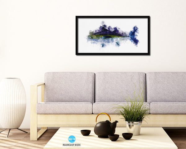 Blackfin Tuna Fish Art Wood Frame Modern Restaurant Sushi Wall Decor Gifts, 10" x 20"