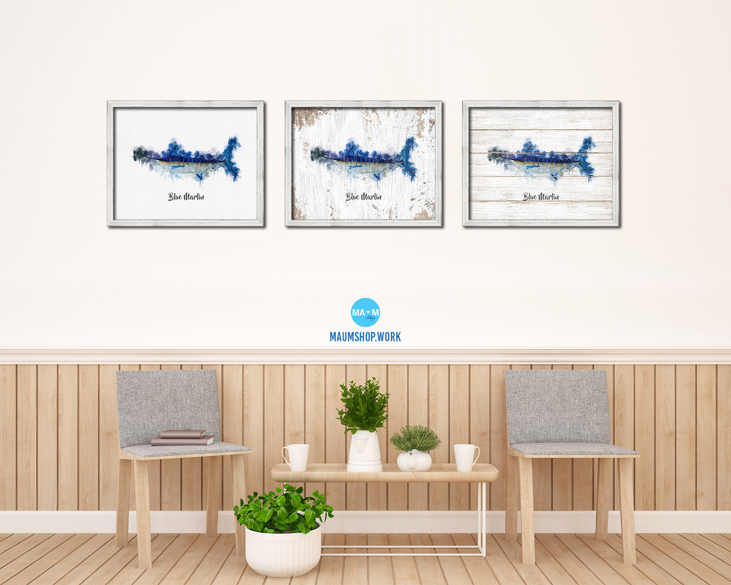 Blue Marlin Fish Framed Prints Modern Restaurant Sushi Bar Watercolor Wall Art Decor