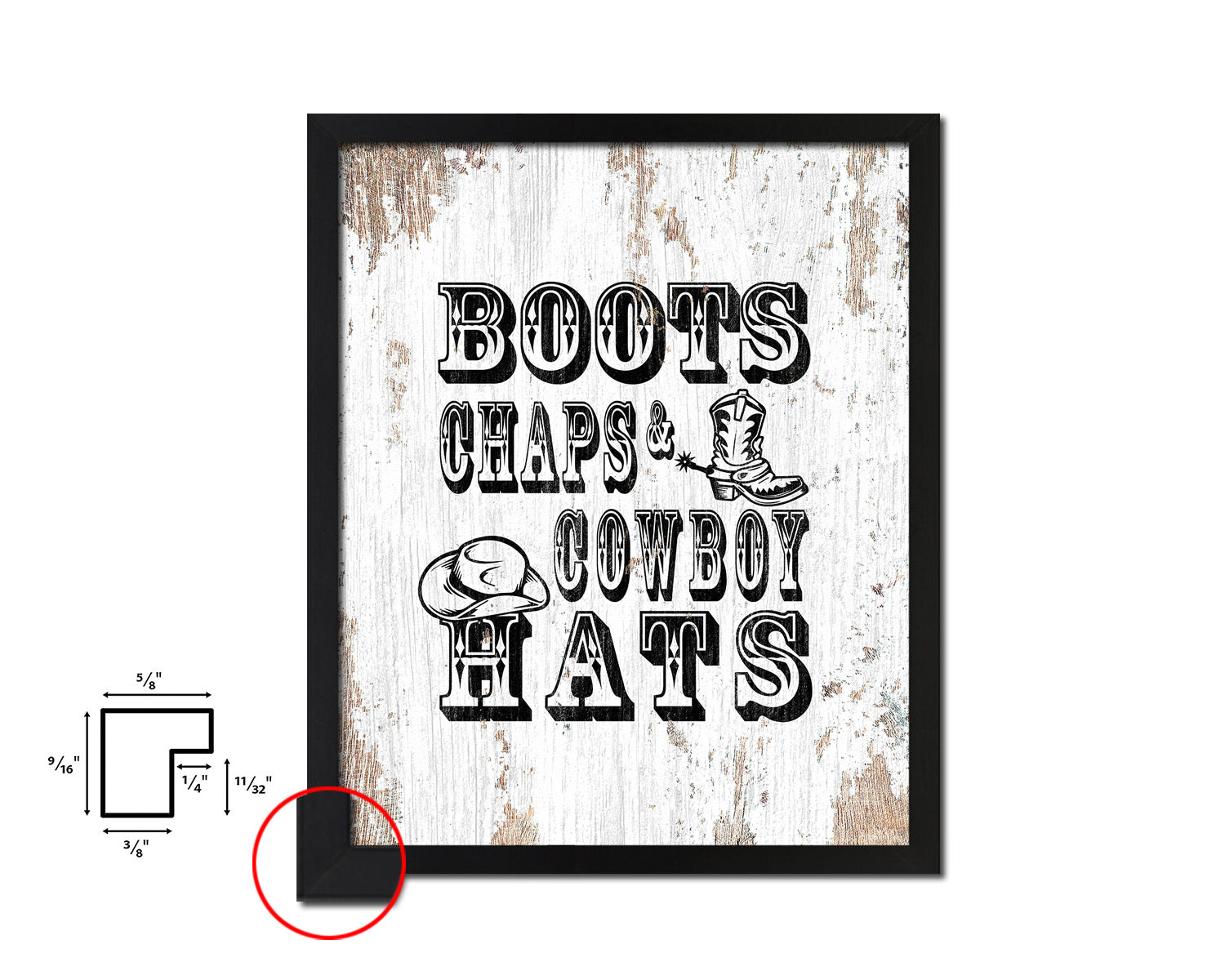 Boots chaps and cowboy hats Quote Framed Artwork Print Home Decor Wall Art Gifts