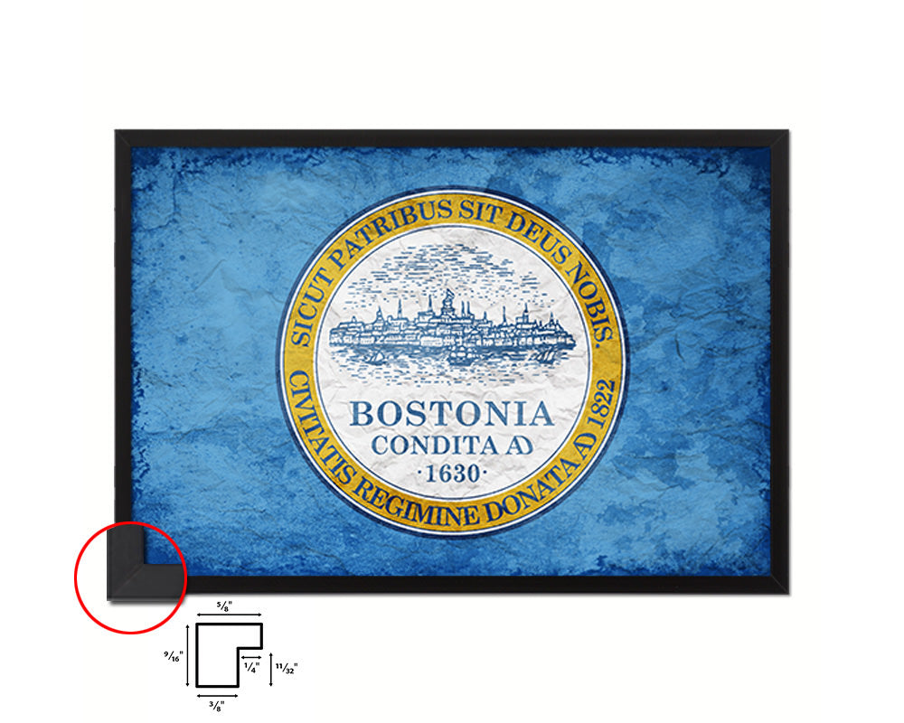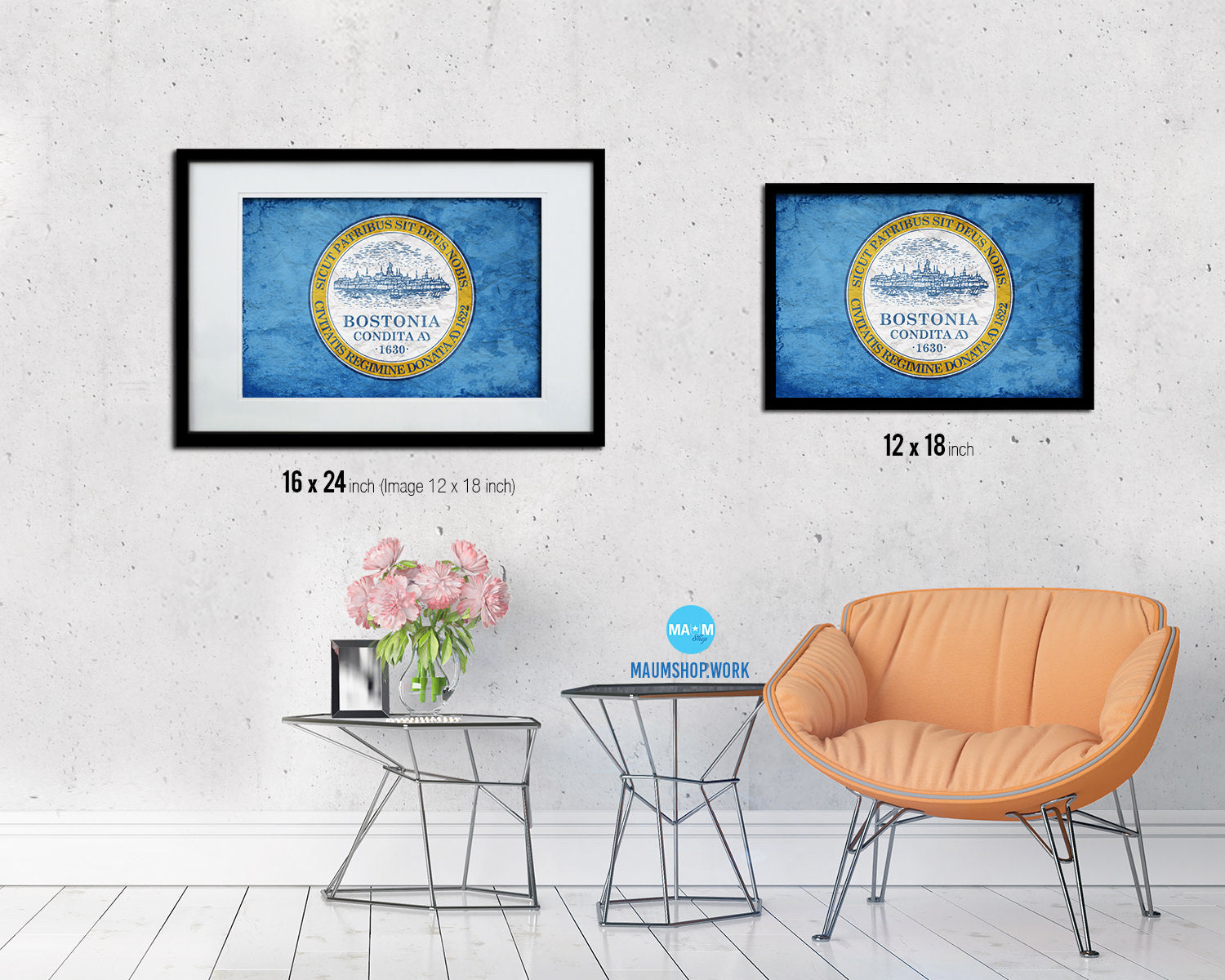 Boston City Massachusetts State Vintage Flag Wood Framed Prints Decor Wall Art Gifts