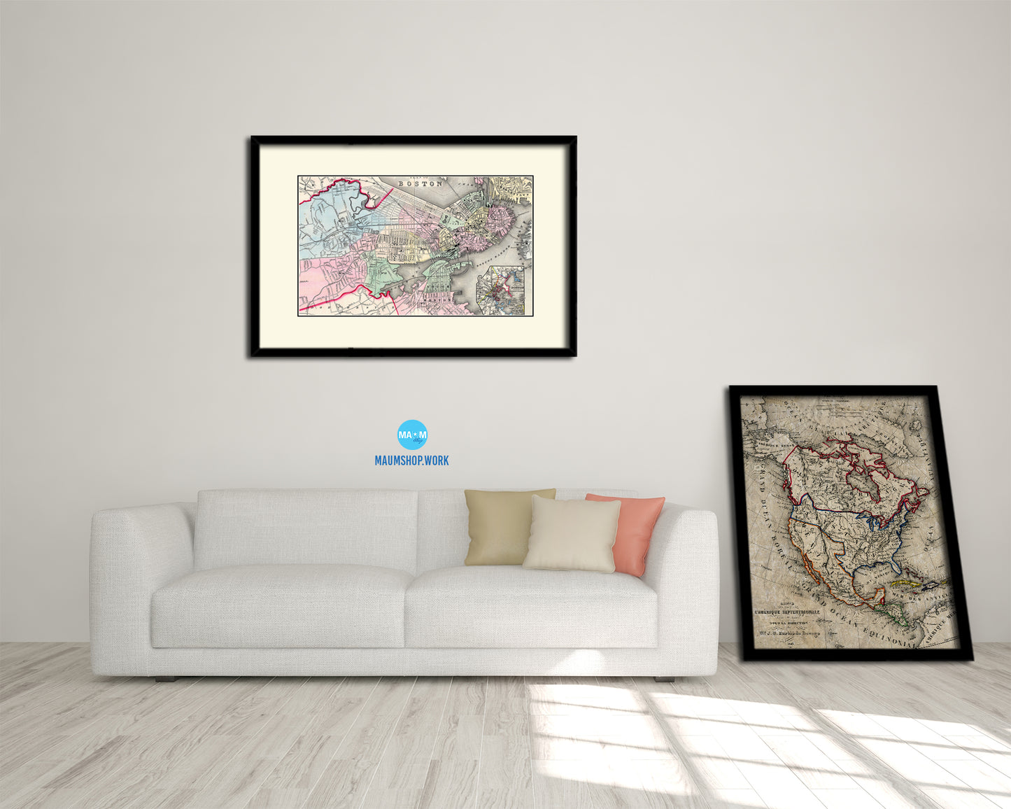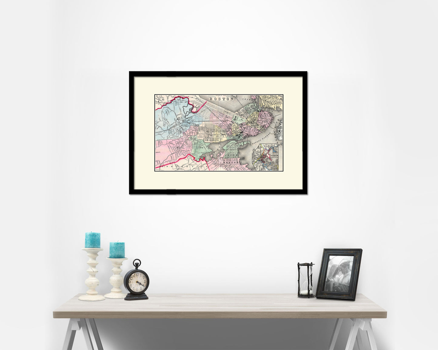 Boston Old Map Framed Print Art Wall Decor Gifts