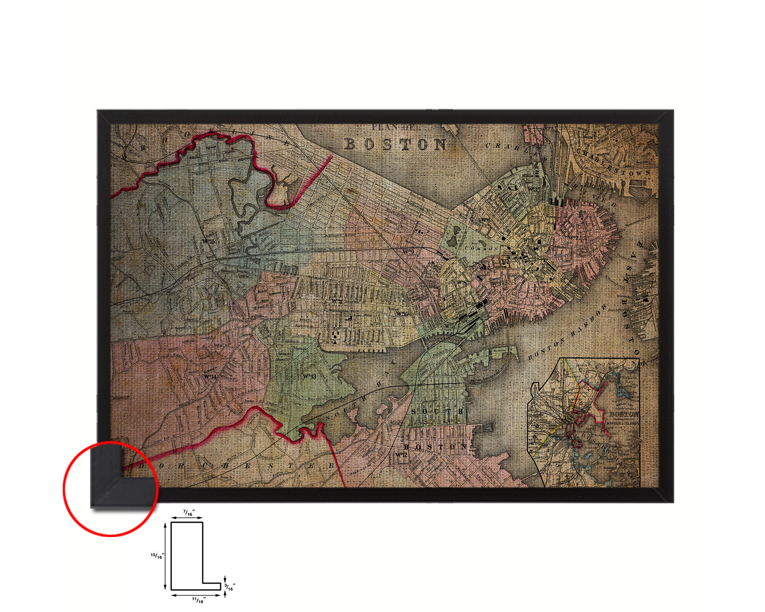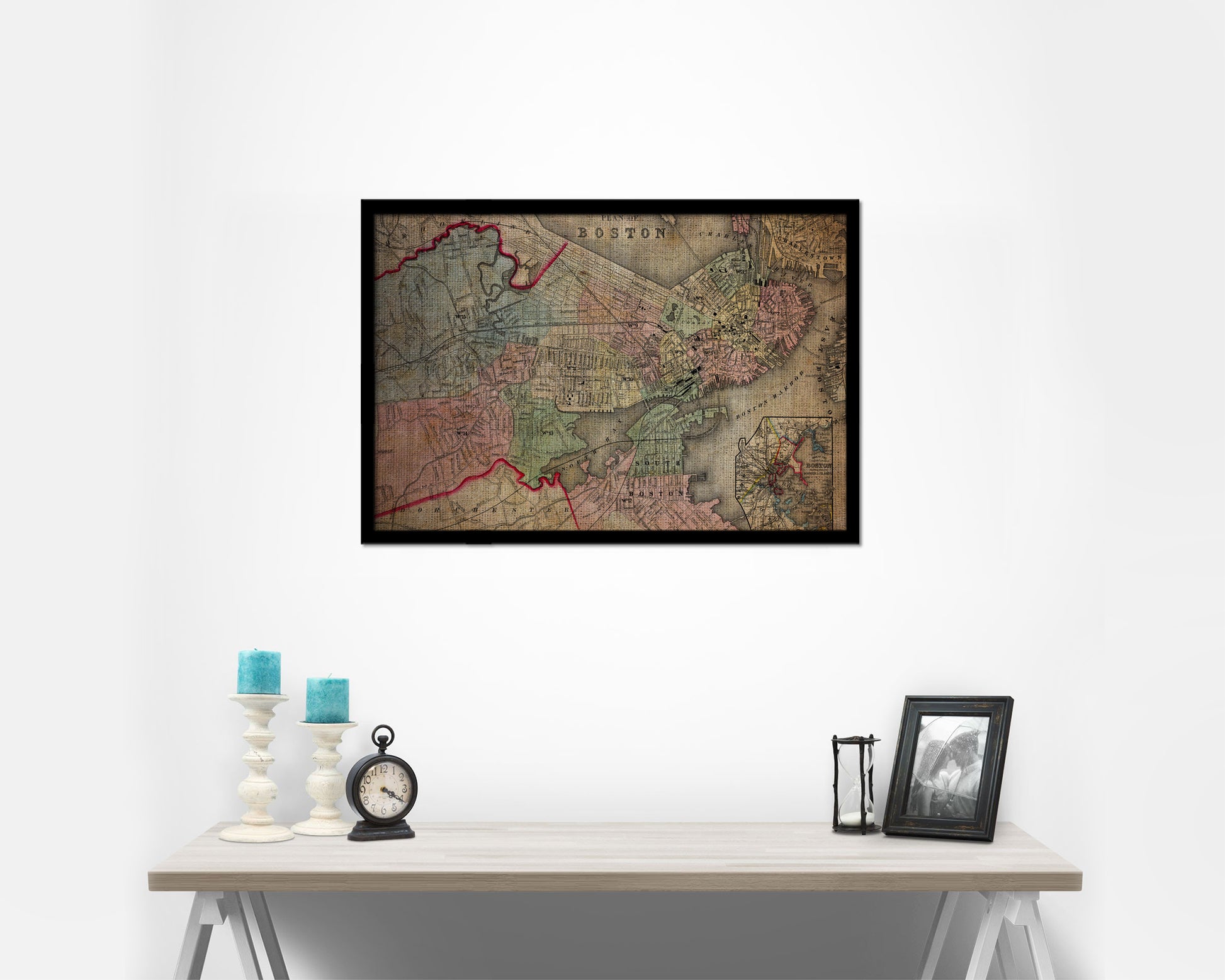 Boston Vintage Map Framed Print Art Wall Decor Gifts