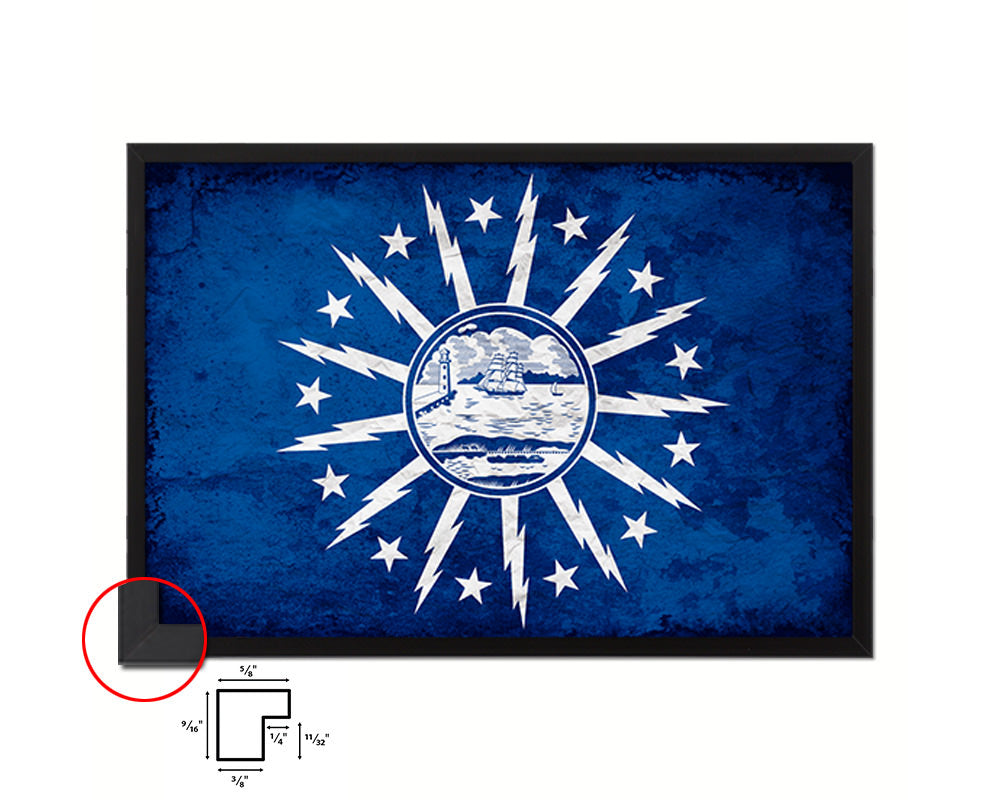Buffalo City New York State Vintage Flag Wood Framed Prints Decor Wall Art Gifts