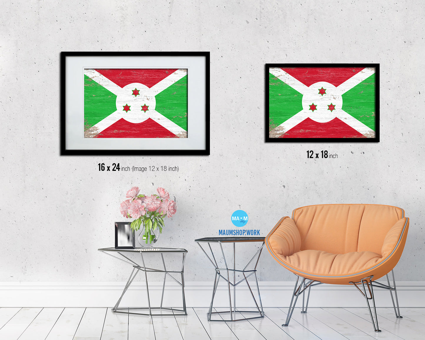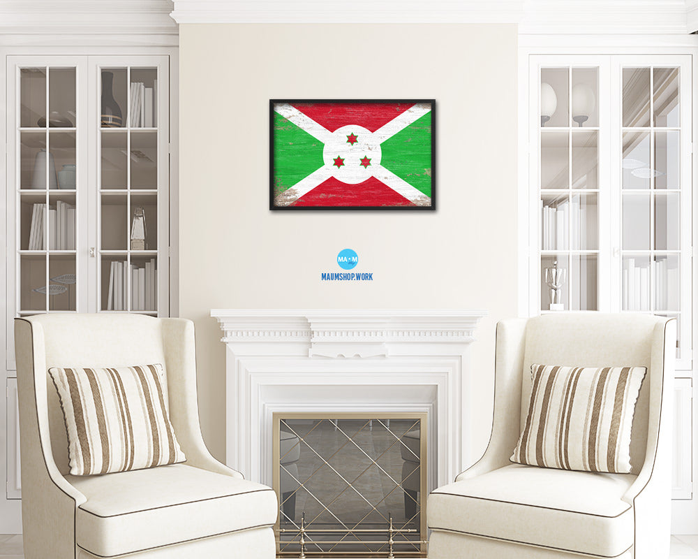 Burundi Shabby Chic Country Flag Wood Framed Print Wall Art Decor Gifts