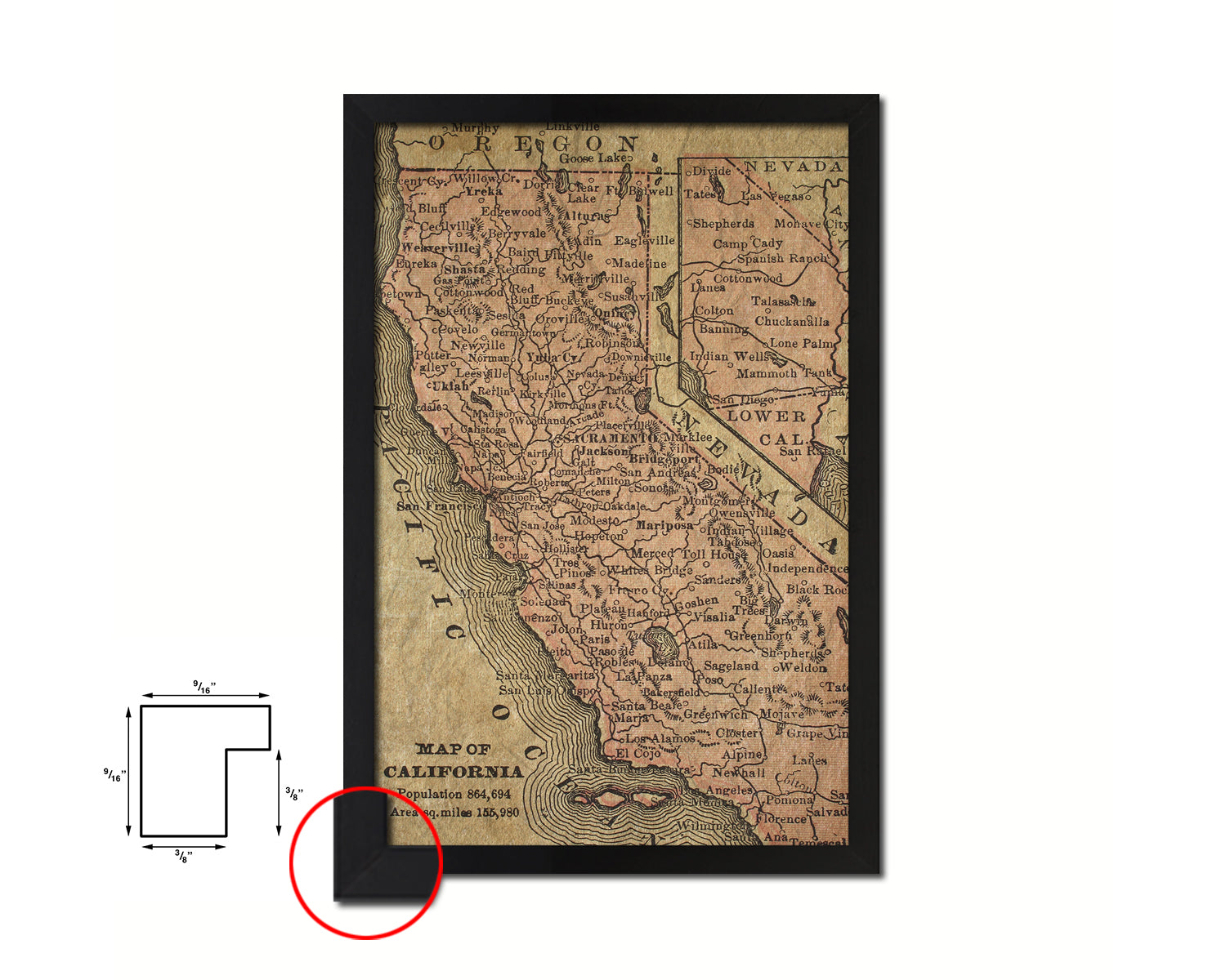 California Circa Historical Map Wood Framed Print Art Wall Decor Gifts