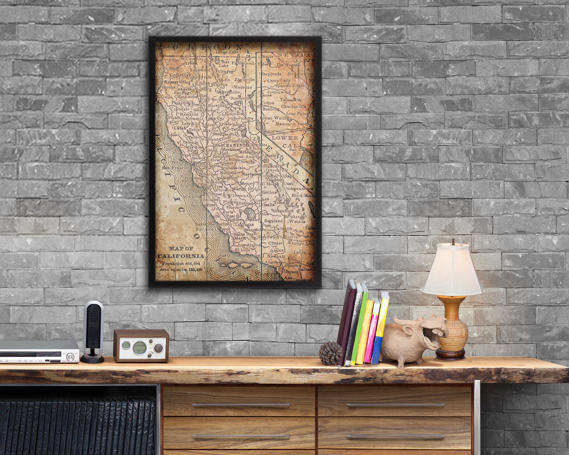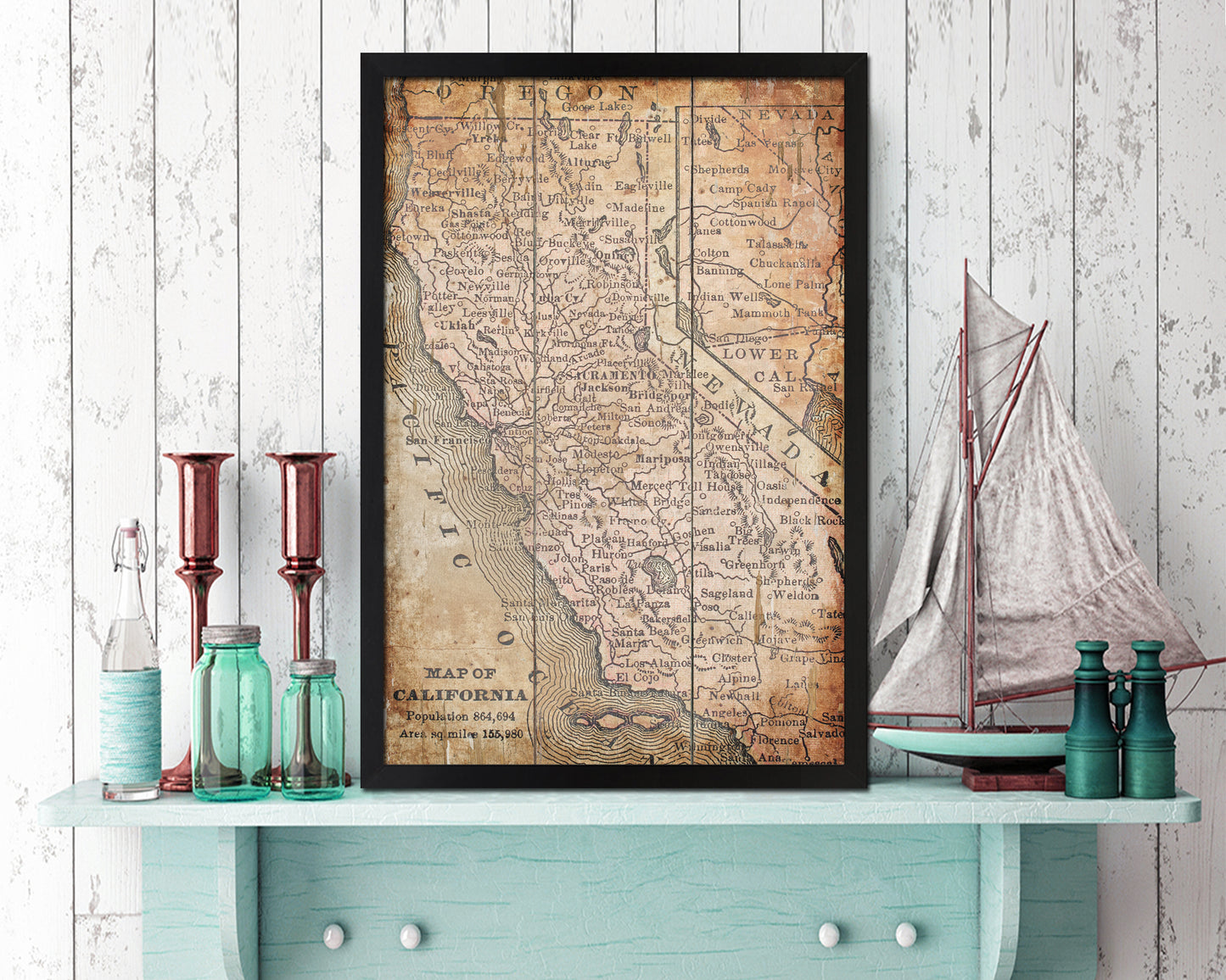 California Circa Antique Map Wood Framed Print Art Wall Decor Gifts