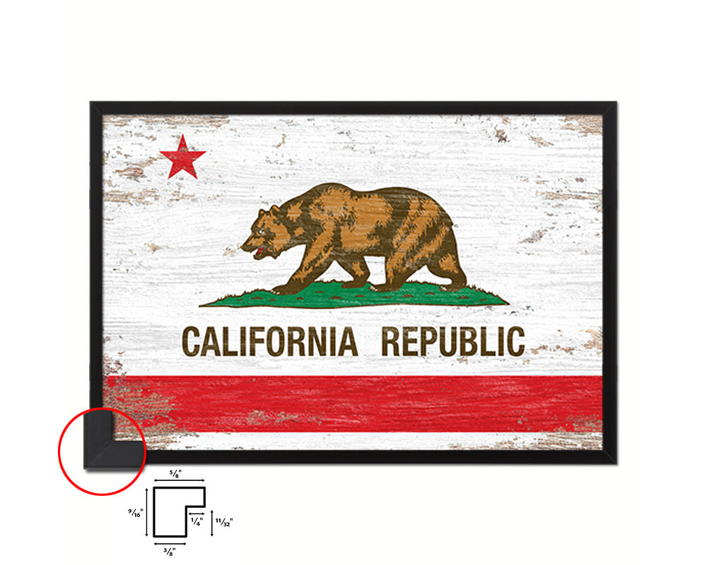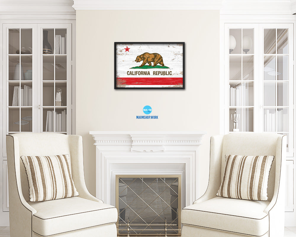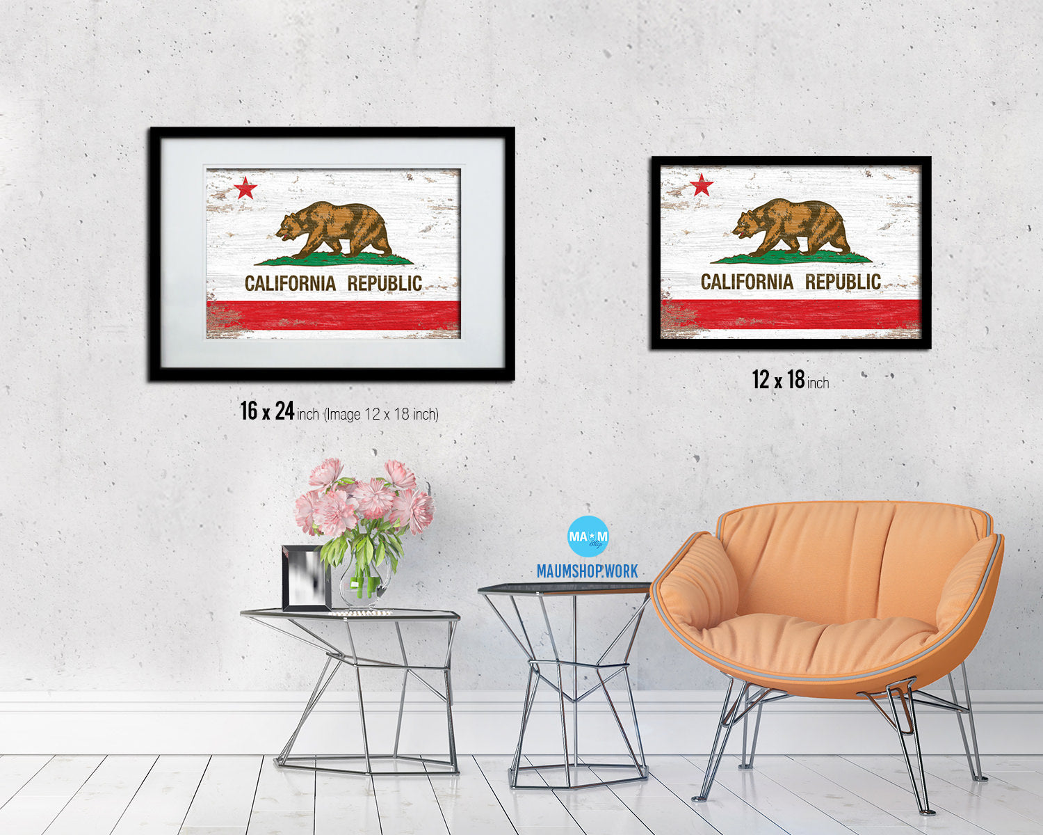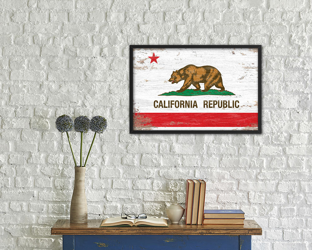 California State Shabby Chic Flag Wood Framed Paper Print Wall Art Decor Gifts