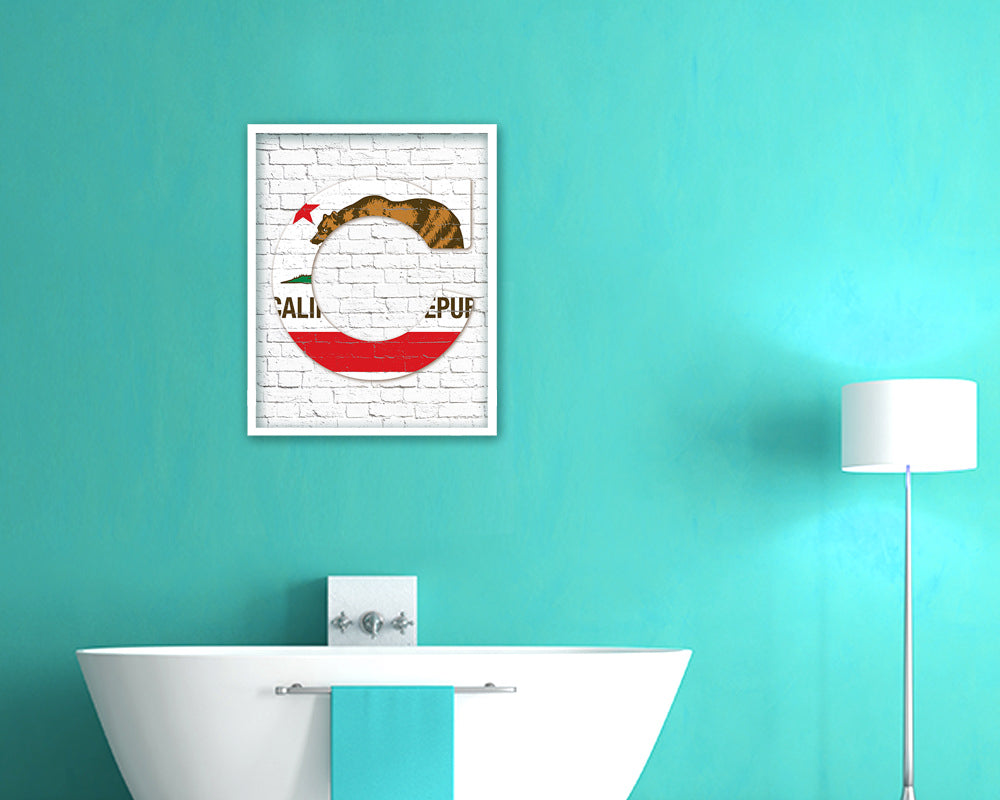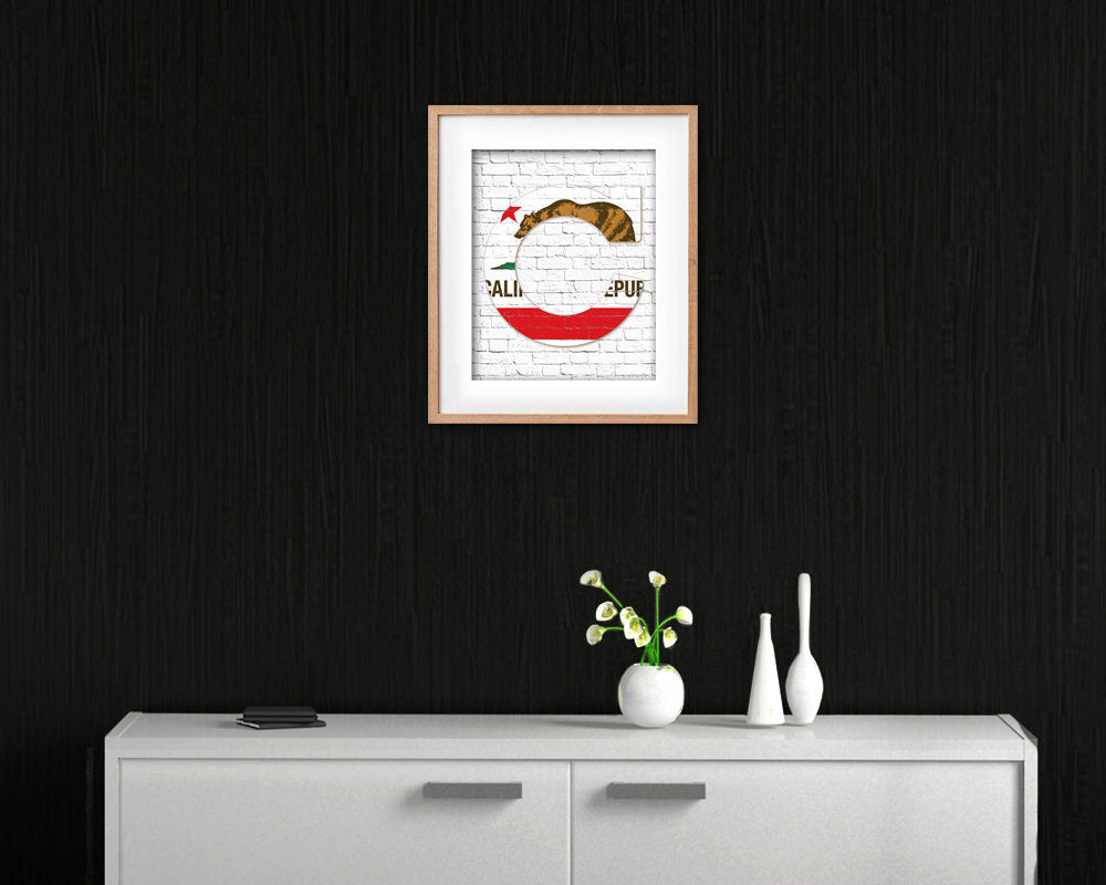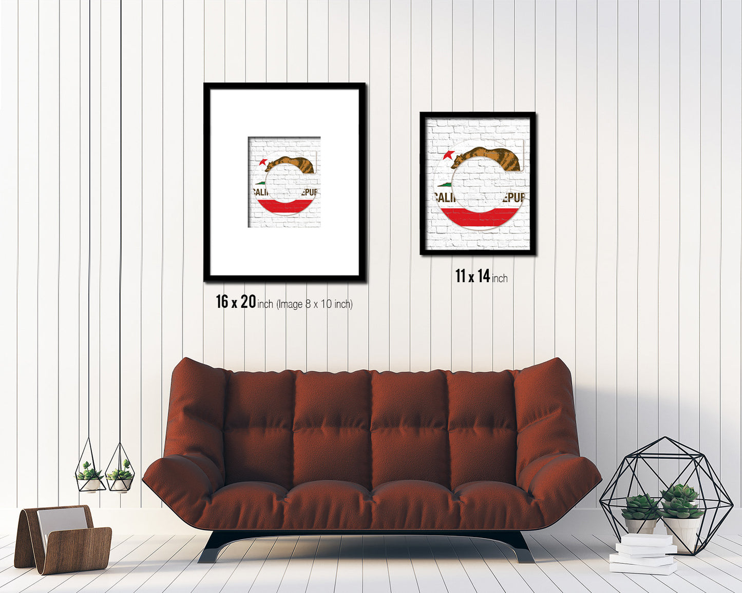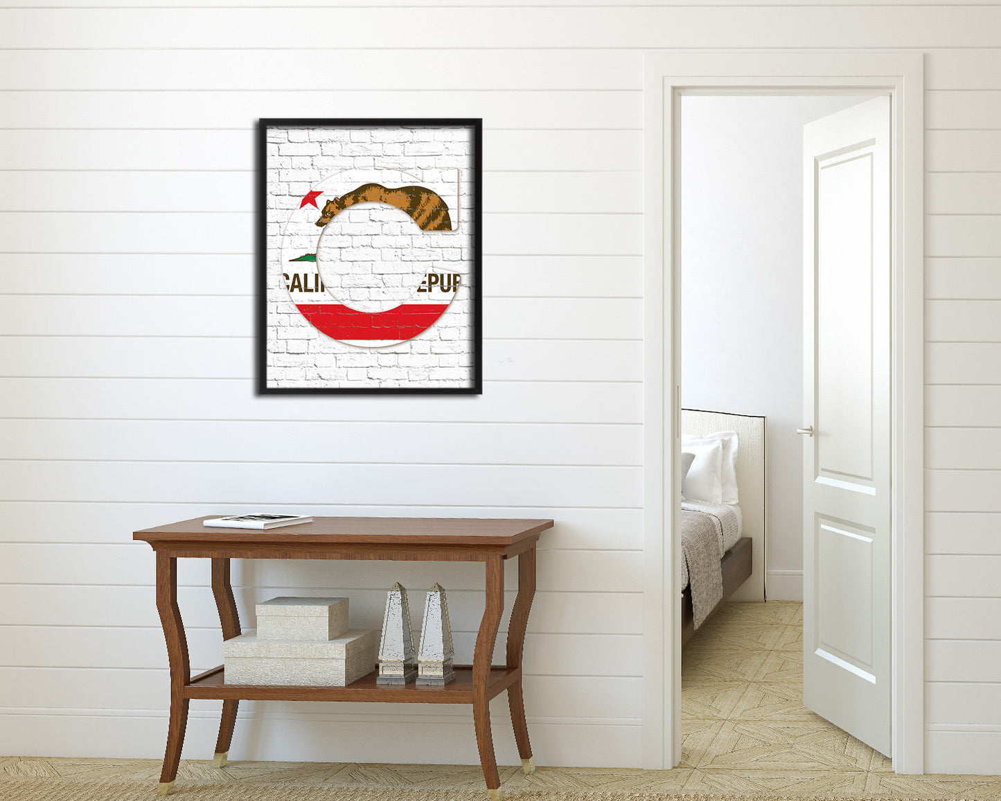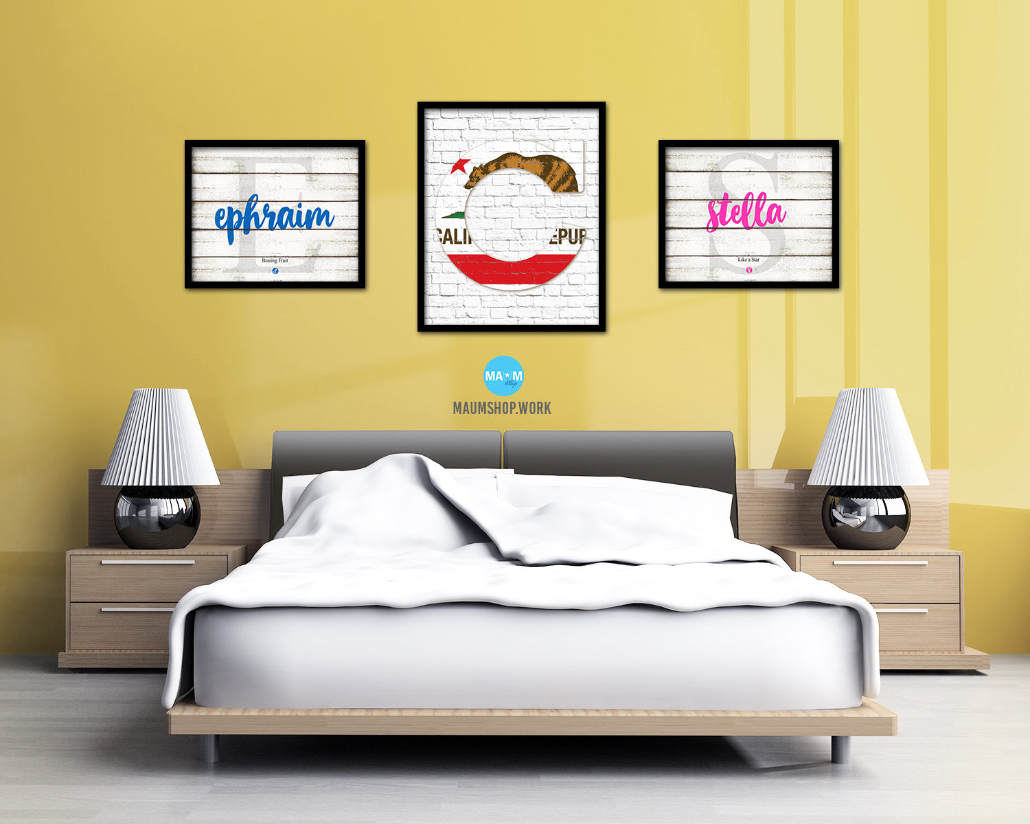California State Initial Flag Wood Framed Paper Print Decor Wall Art Gifts, Brick
