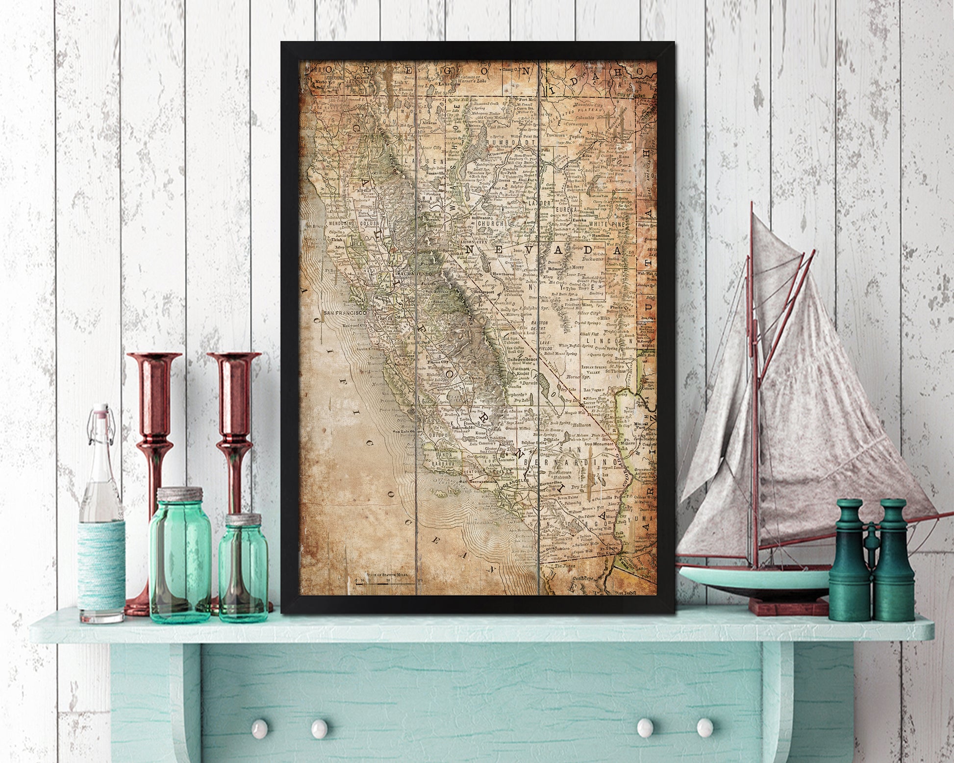California Antique Map Framed Print Art Gifts