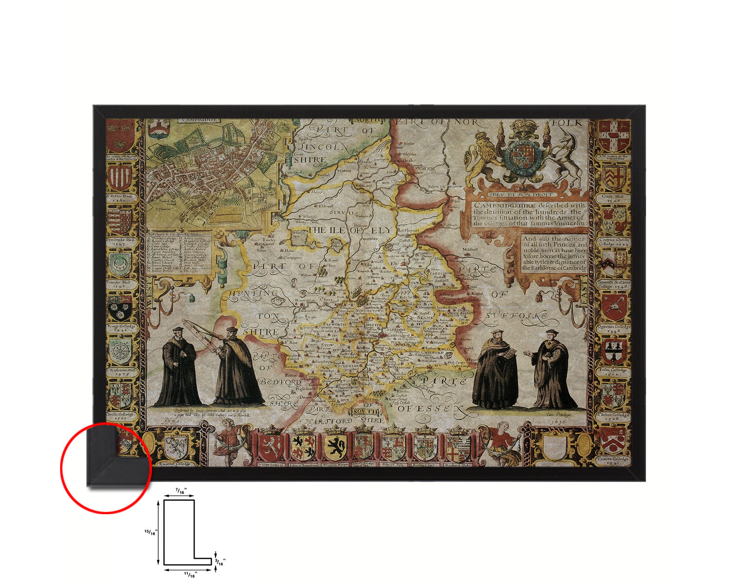 Cambridgeshire Theatre Empire Great Britain John Speed Historical Map Framed Print Art Gifts