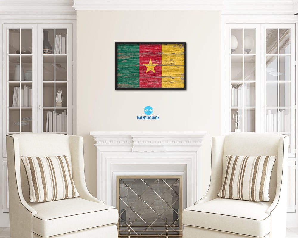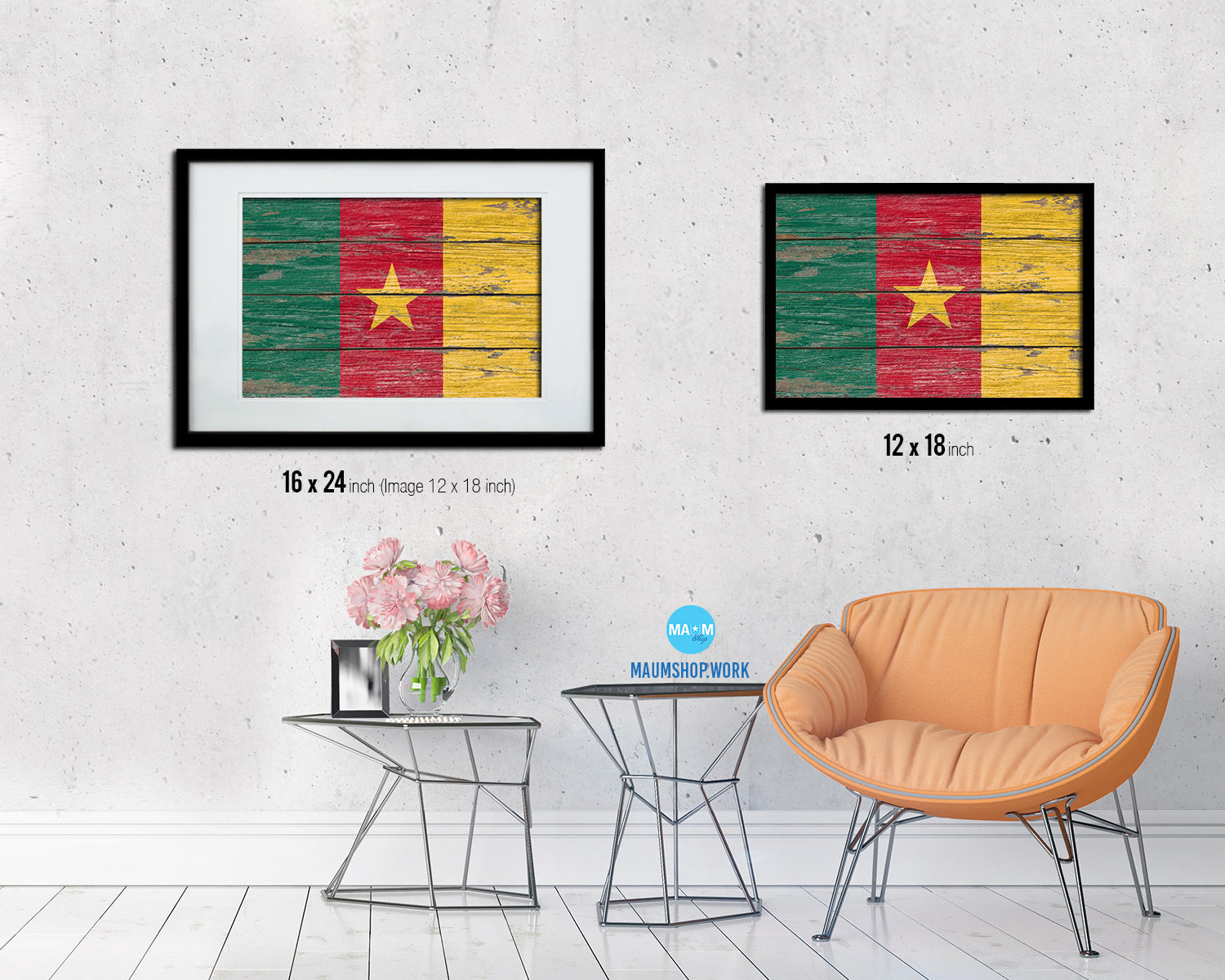 Cameroon Country Wood Rustic National Flag Wood Framed Print Wall Art Decor Gifts