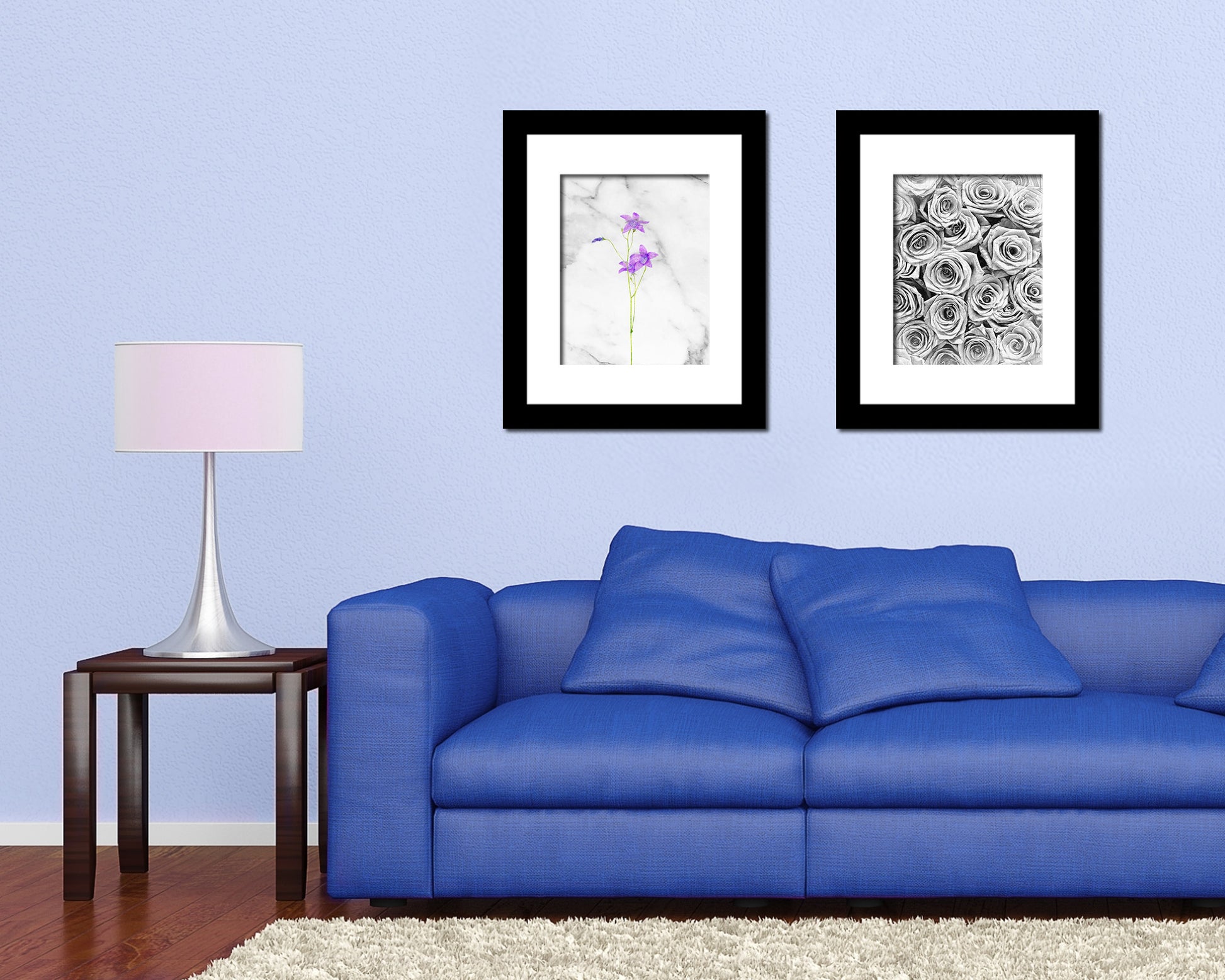 Campanula Marble Texture Plants Art Wood Framed Print Wall Decor Gifts