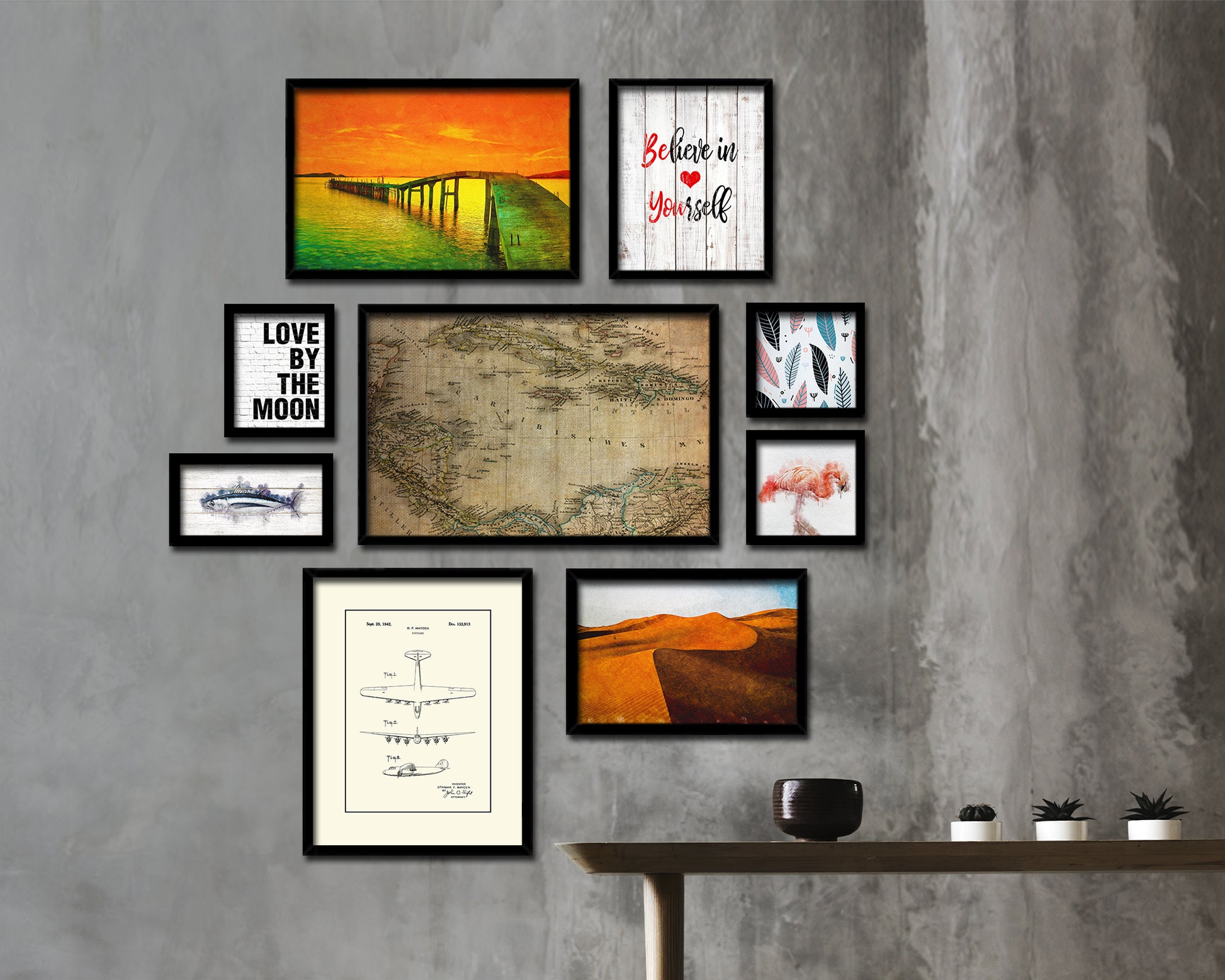 Caribbean Cuba Jamaica Styler 1875 Vintage Map Framed Print Art Wall Decor Gifts