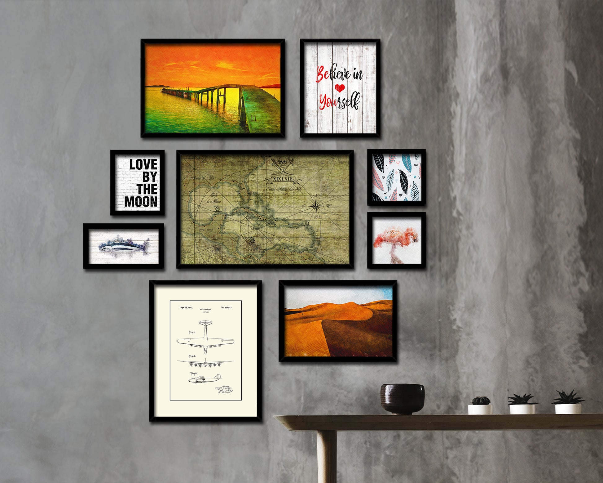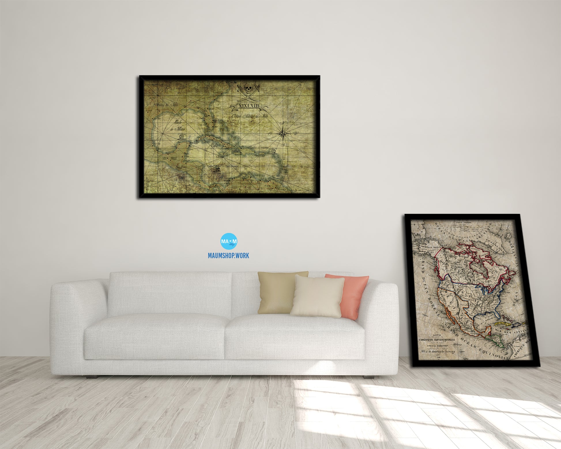 Caribbean Historical Map Framed Print Art Wall Decor Gifts