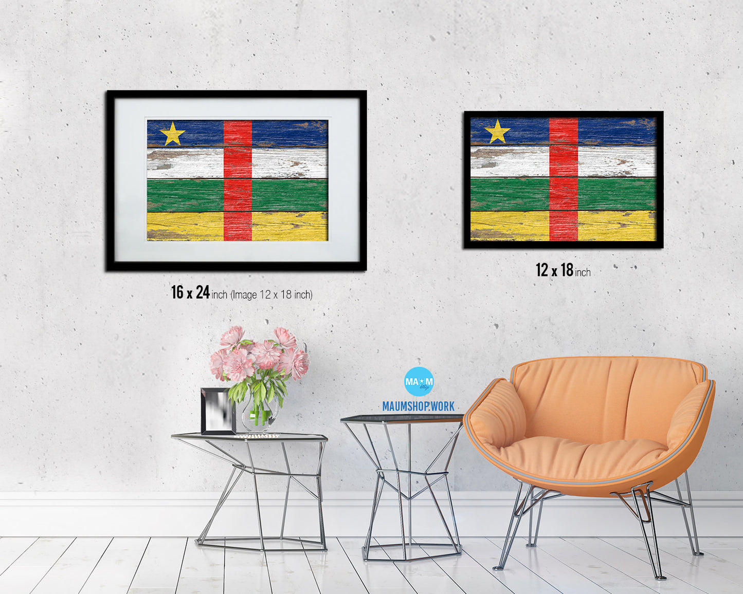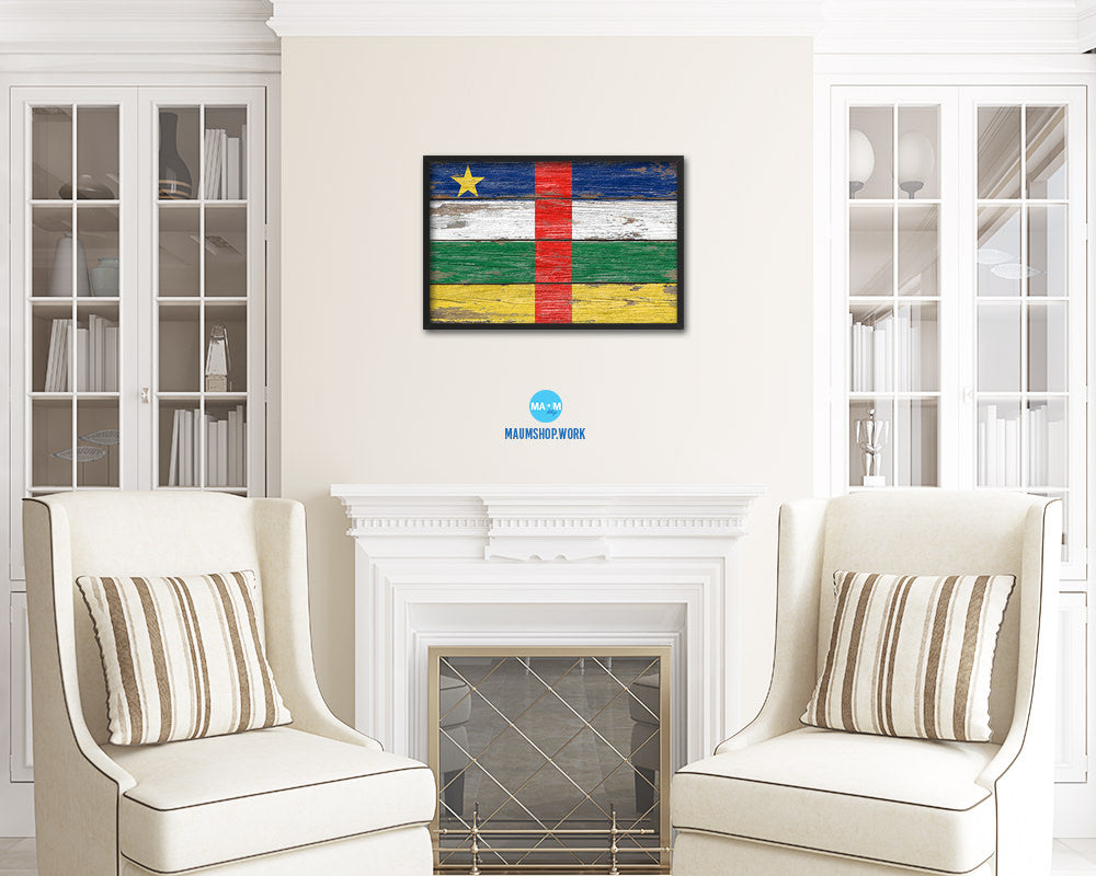 Central African Republic Country Wood Rustic National Flag Wood Framed Print Wall Art Decor Gifts