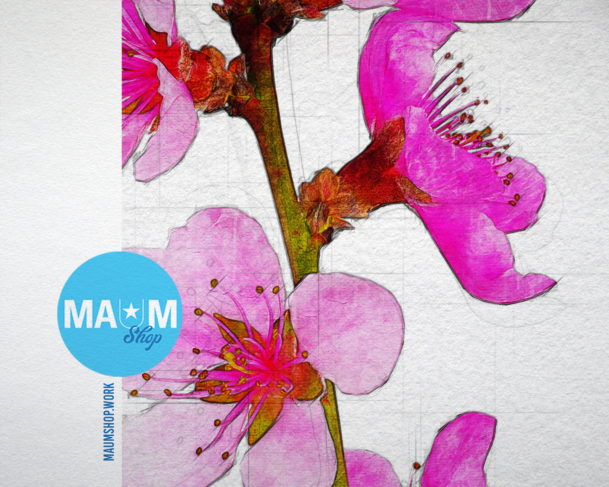 Cherry Blossoms Bloom Sketch Plants Art Wood Framed Print Wall Decor Gifts