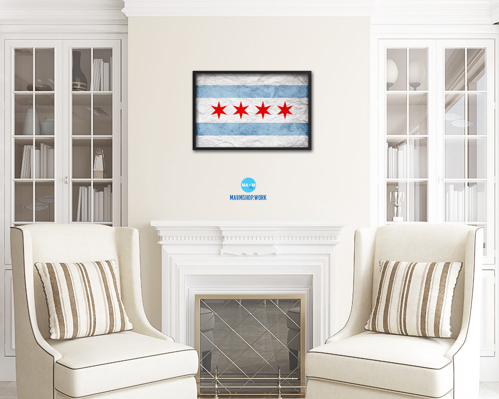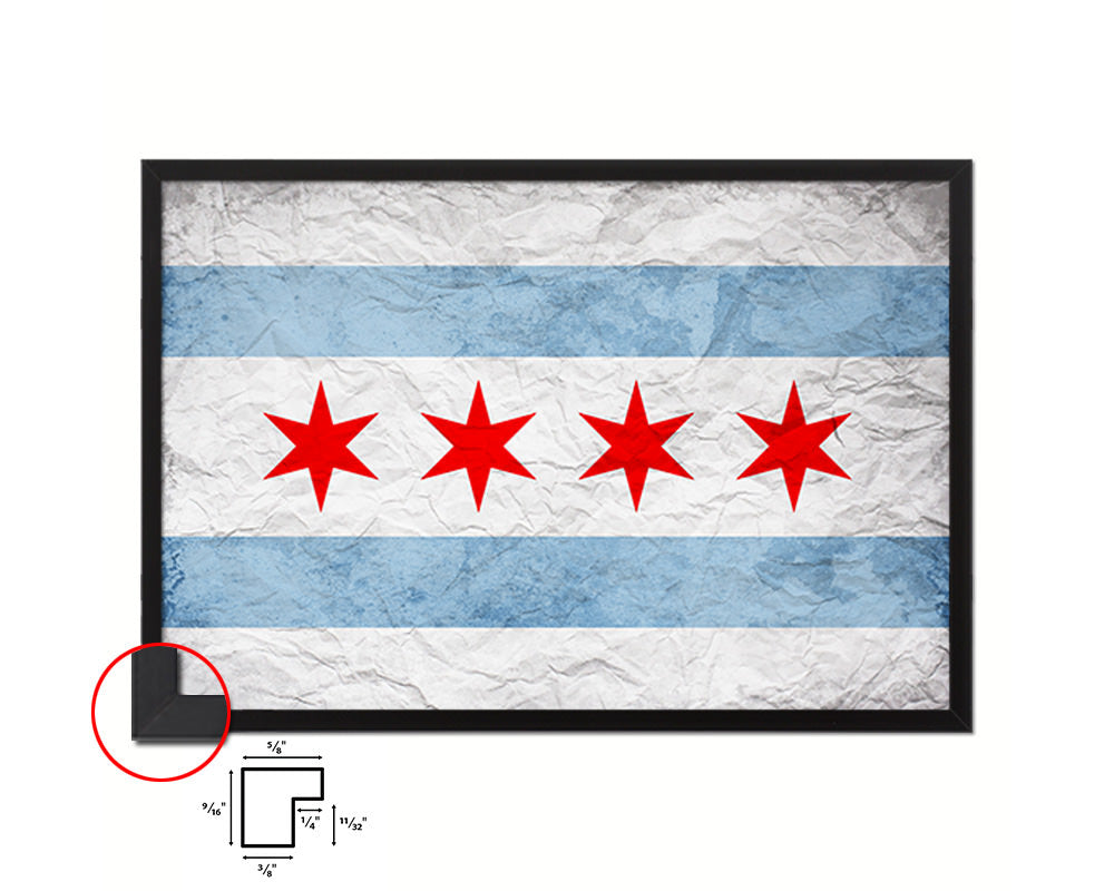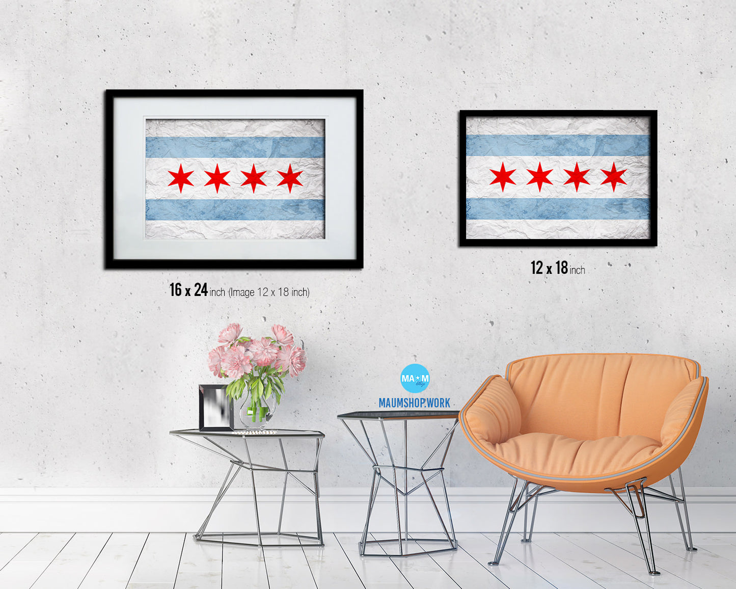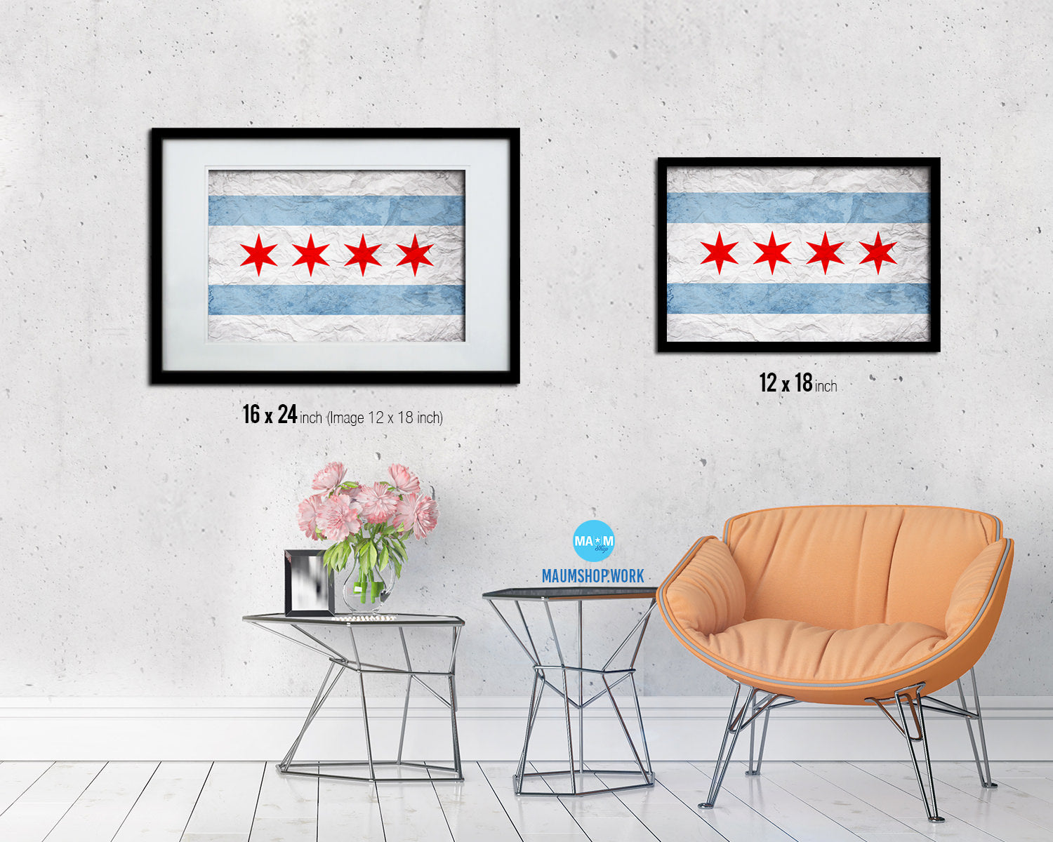 Chicago City Illinois State Vintage Flag Wood Framed Prints Decor Wall Art Gifts