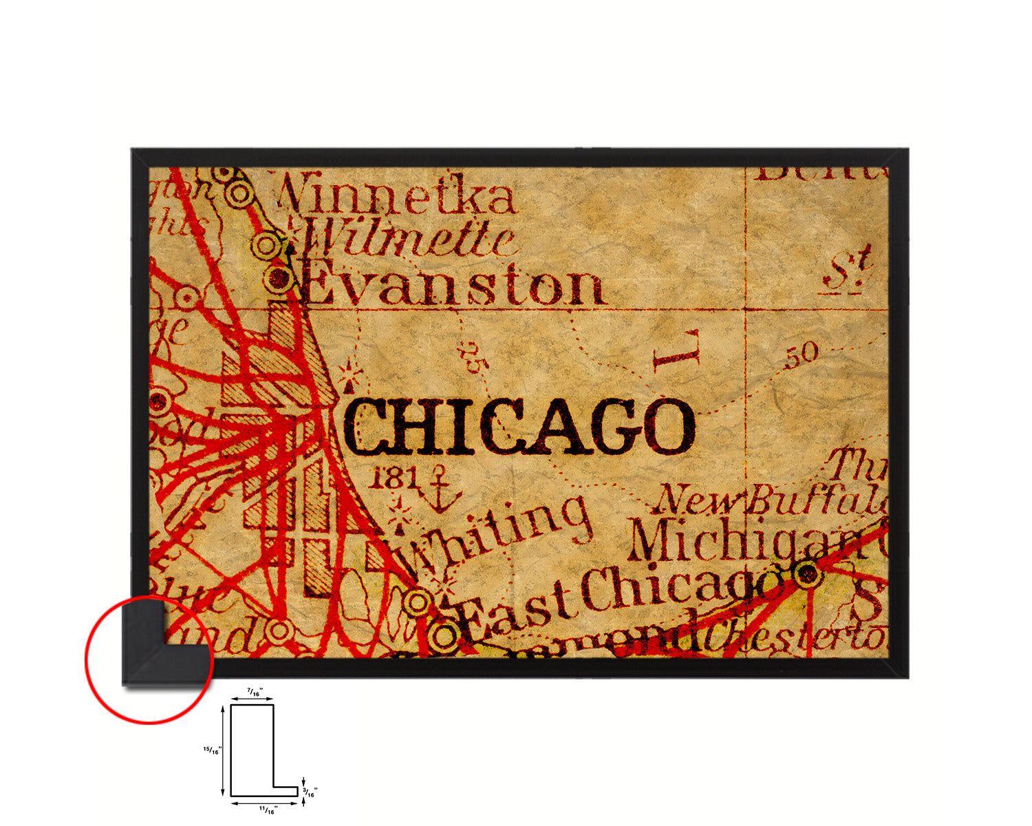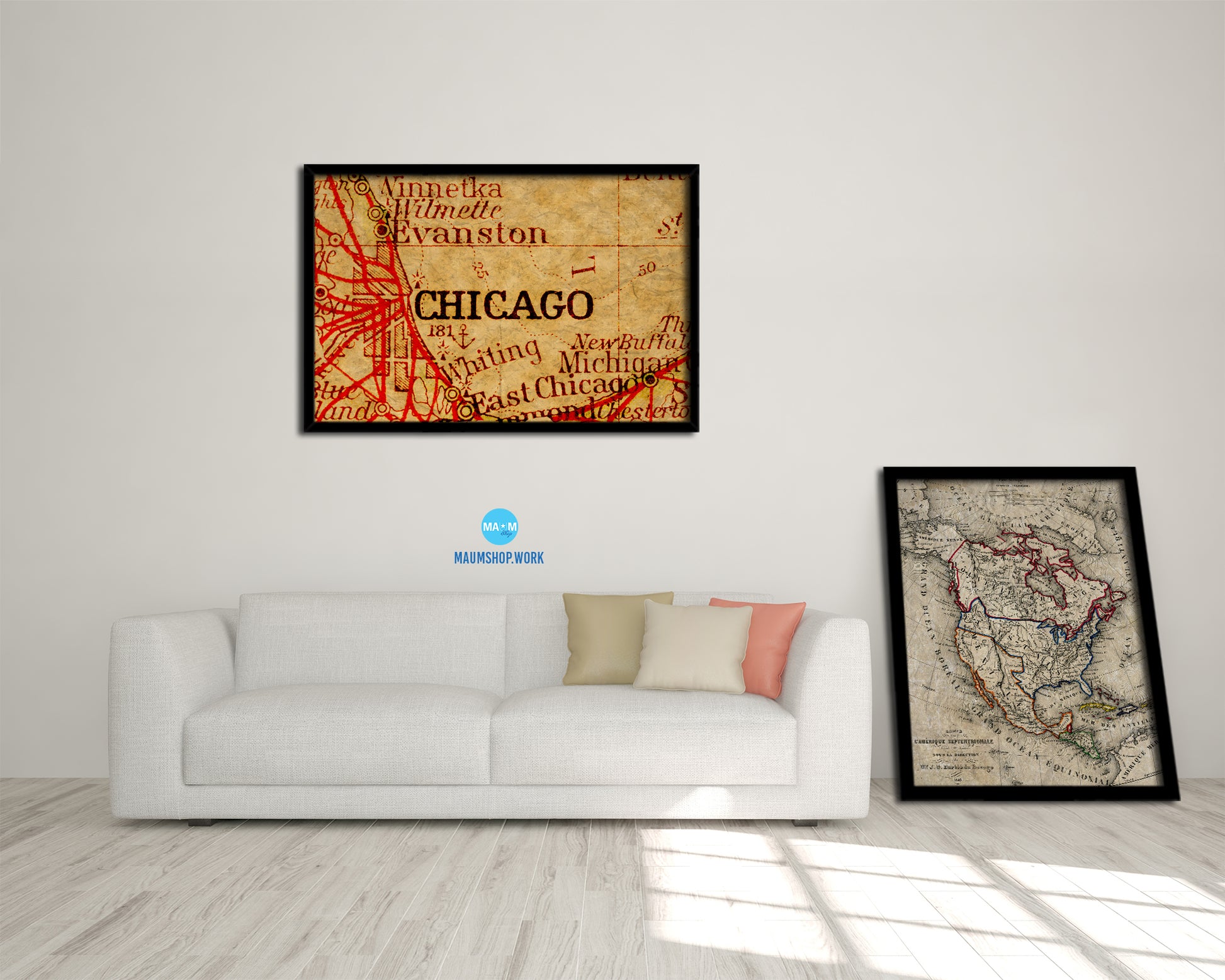 Chicago Illinois Historical Map Framed Print Art Wall Decor Gifts