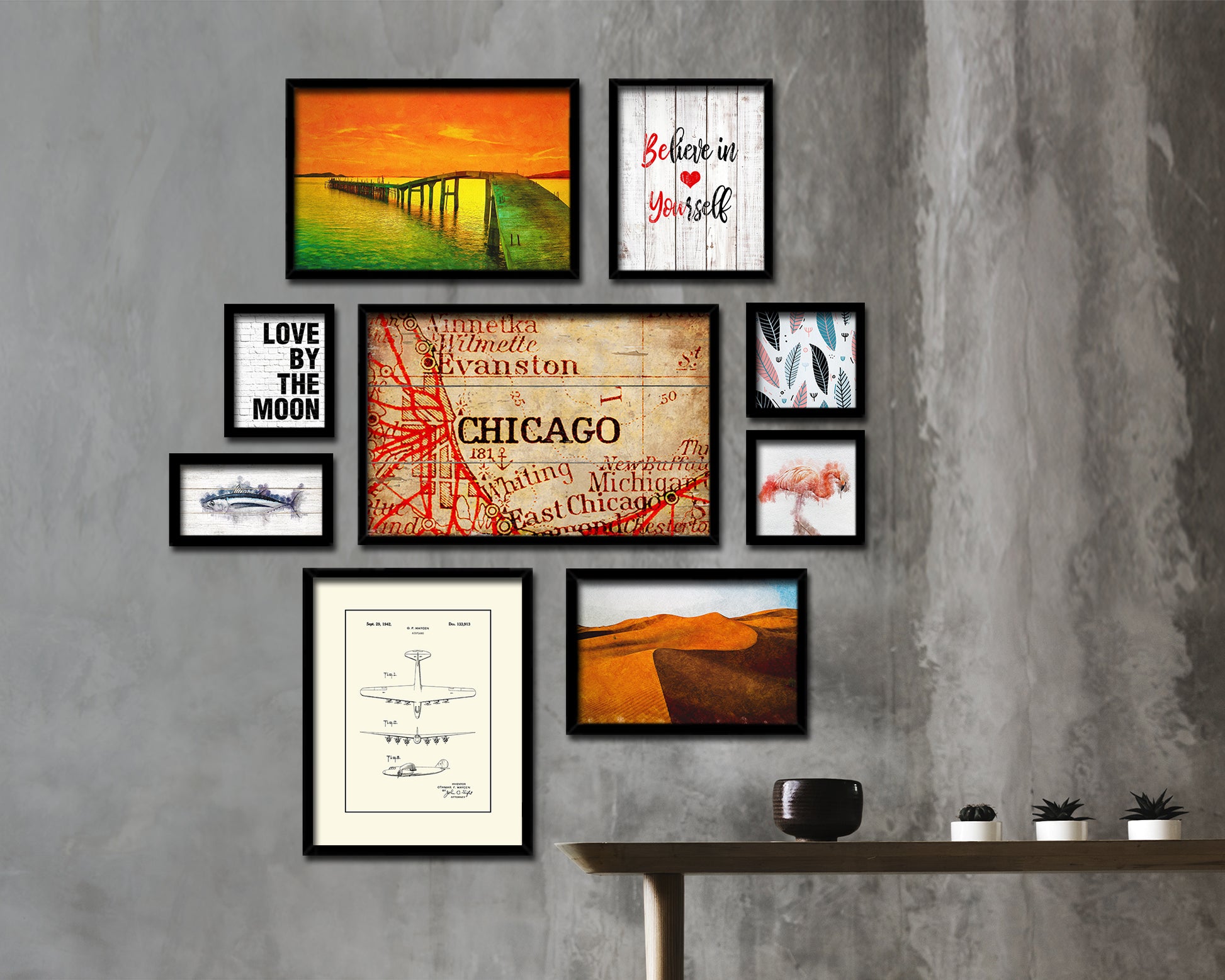 Chicago Illinois Antique Map Framed Print Art Wall Decor Gifts