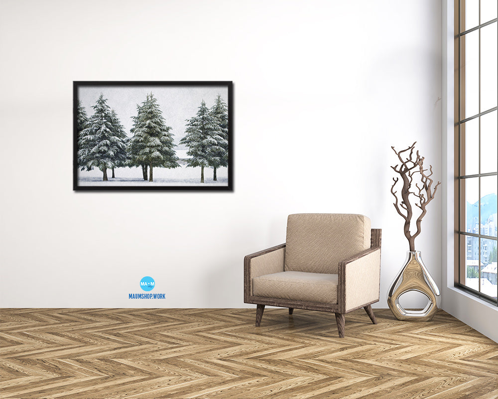 Snowy Winter Christmas Landscape Snow Frost Covered Trees Artwork Painting Print Art Frame Gifts
