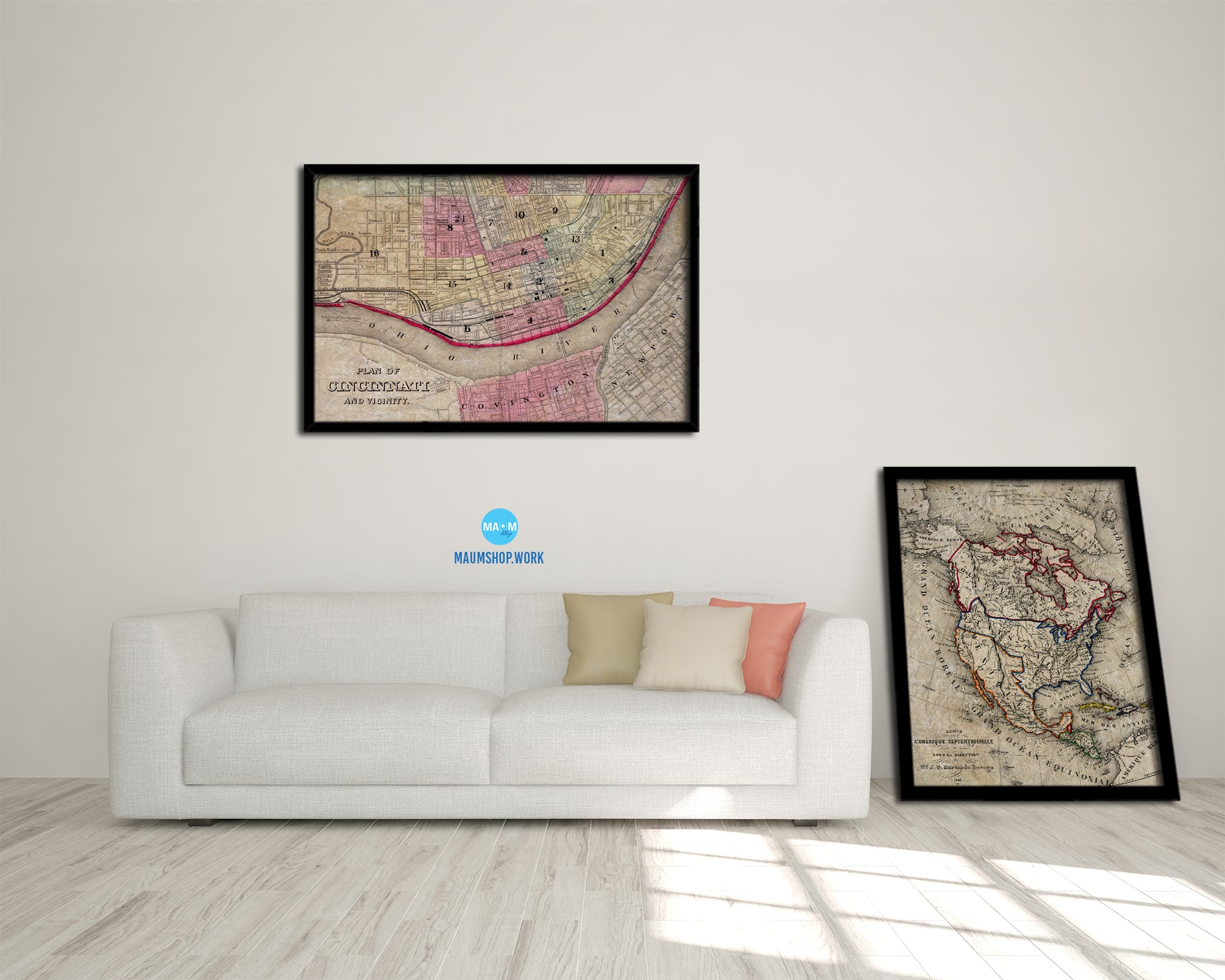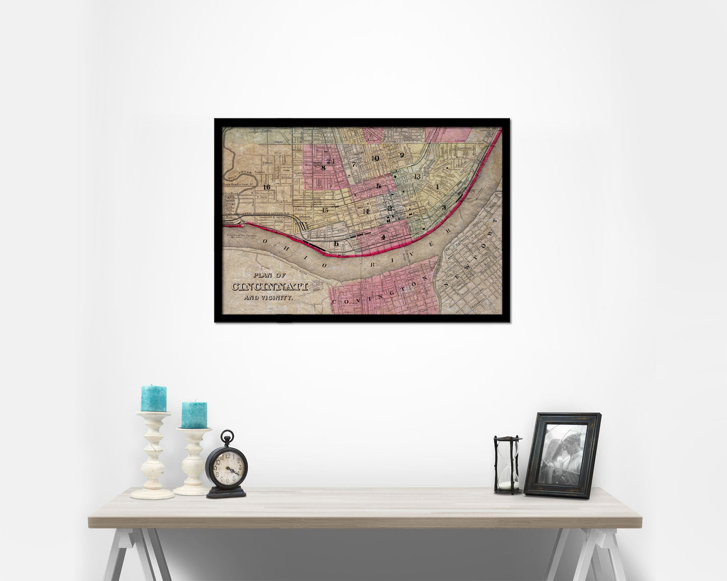 Cincinnati Historical Map Framed Print Art Wall Decor Gifts