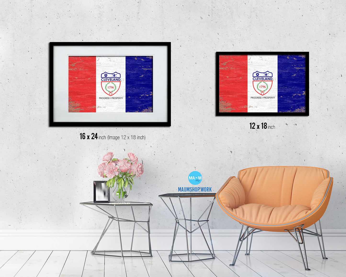 Cleveland City Ohio State Shabby Chic Flag Framed Prints Decor Wall Art Gifts