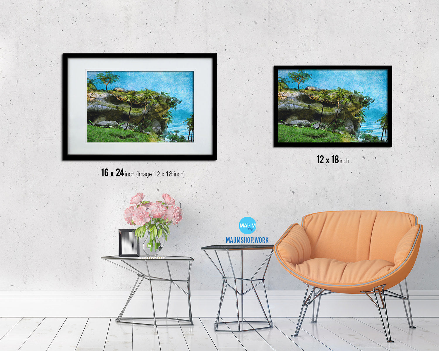 Cliff with palms on a tropical island Landscape Painting Print Art Frame Home Wall Decor Gifts