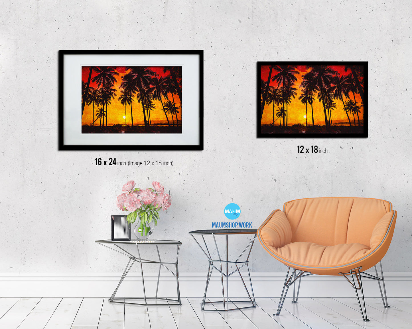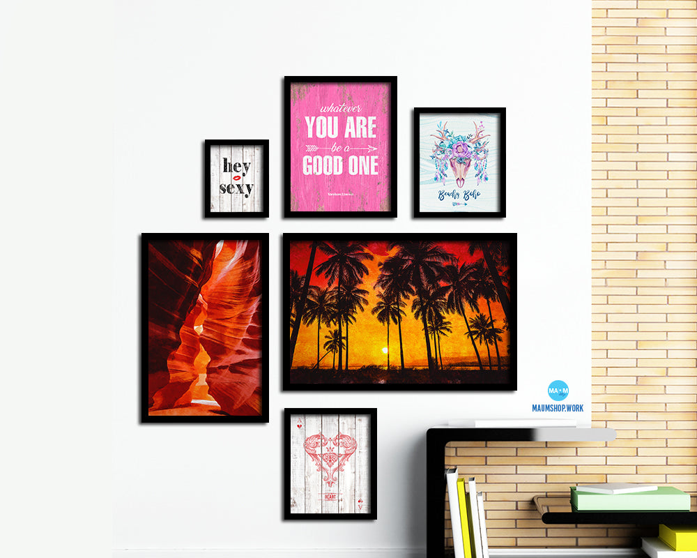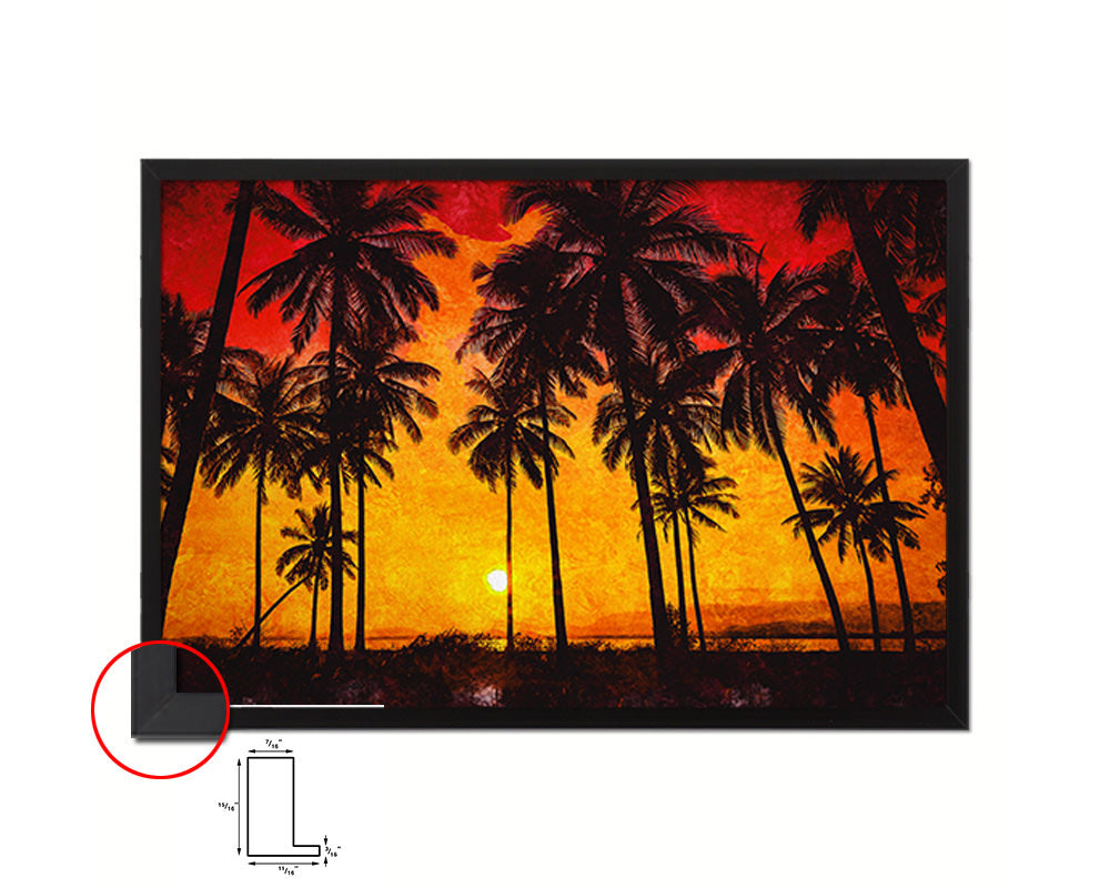 Coconut Palm Trees Beach Sunset Artwork Painting Print Art Frame Home Wall Decor Gifts