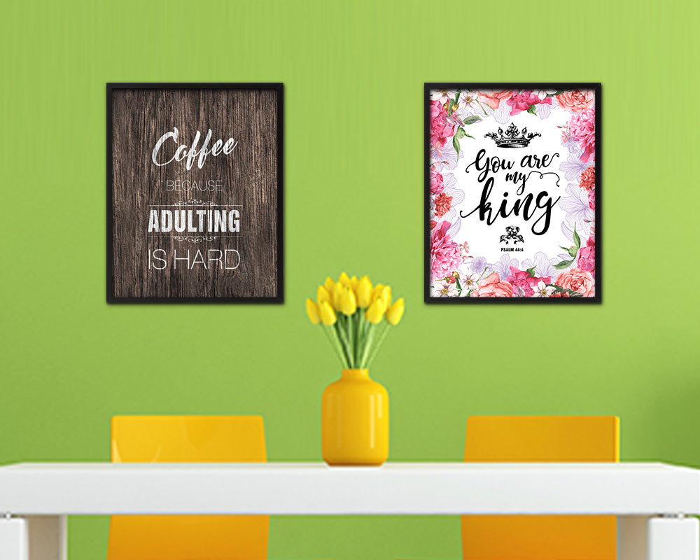 Coffee because adulting is hard Quote Framed Artwork Print Wall Decor Art Gifts