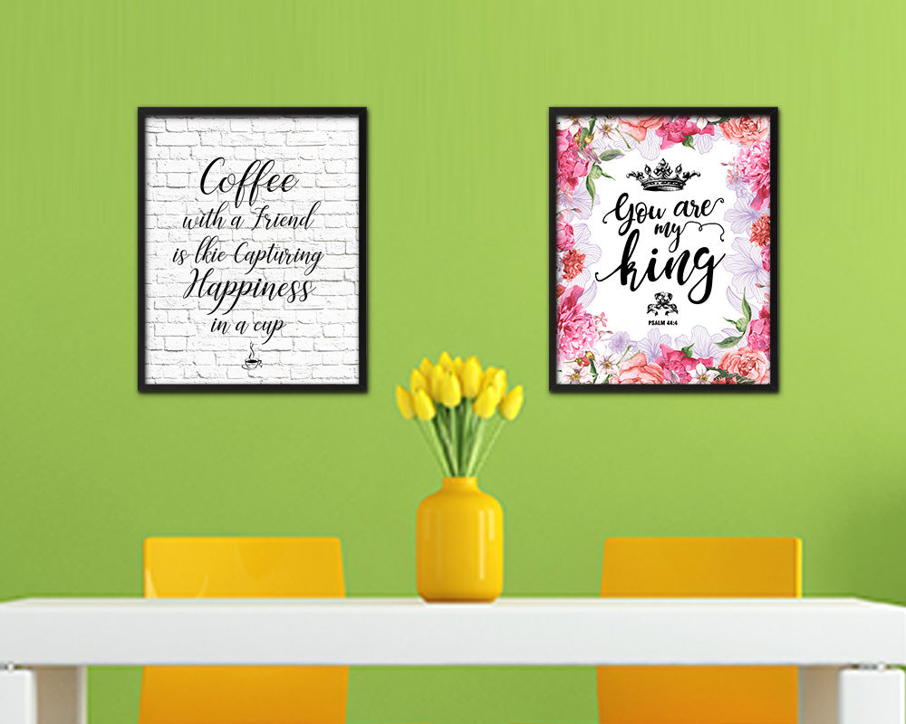 Coffee with a friend is like capturing happiness in a cup Quote Framed Artwork Print Wall Decor Art Gifts