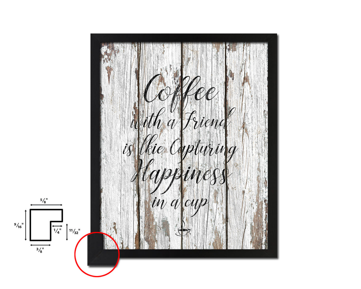Coffee with a friend is like capturing happiness in a cup Quote Framed Artwork Print Wall Decor Art Gifts