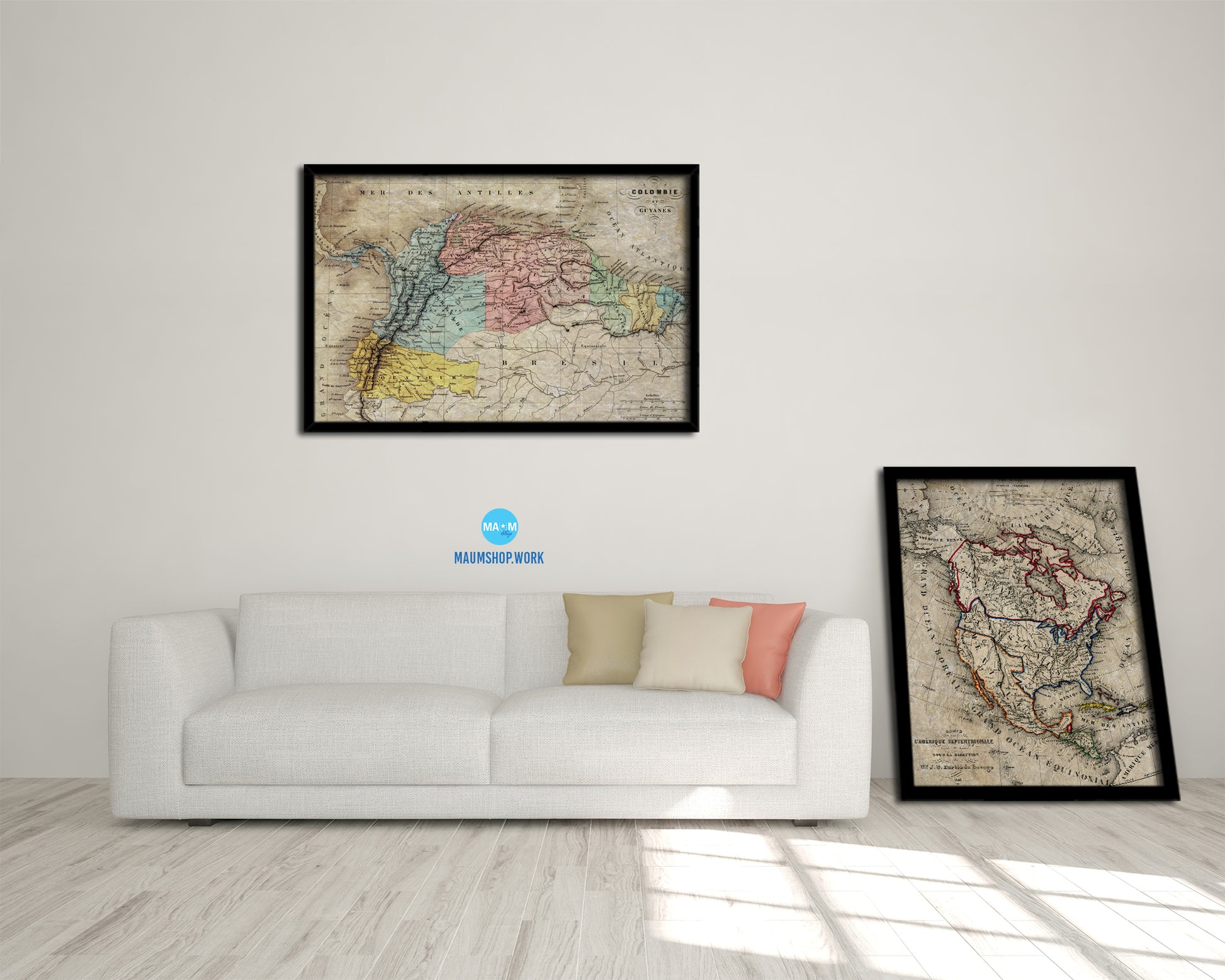 Colombia Venezuela Guyana Historical Map Framed Print Art Wall Decor Gifts