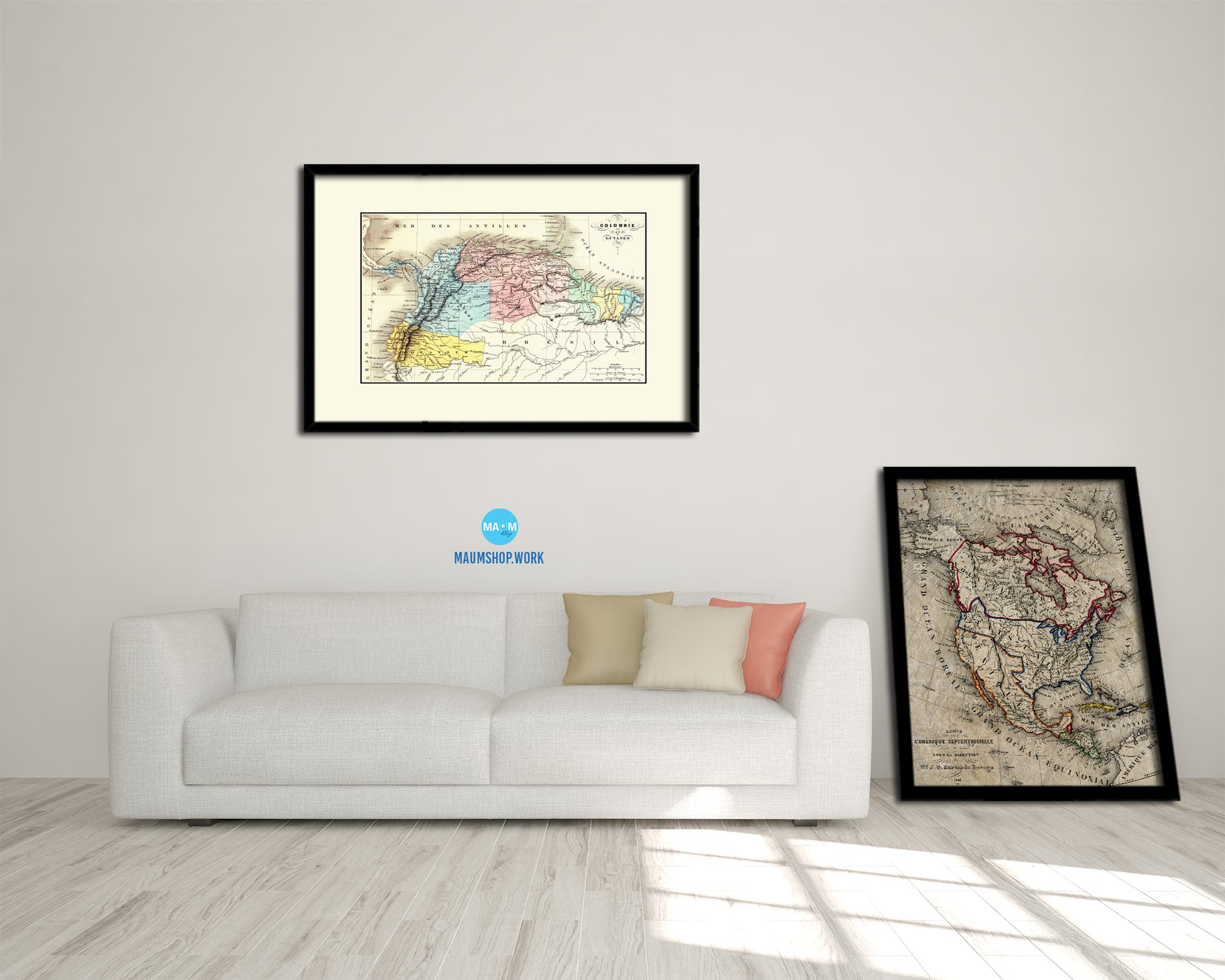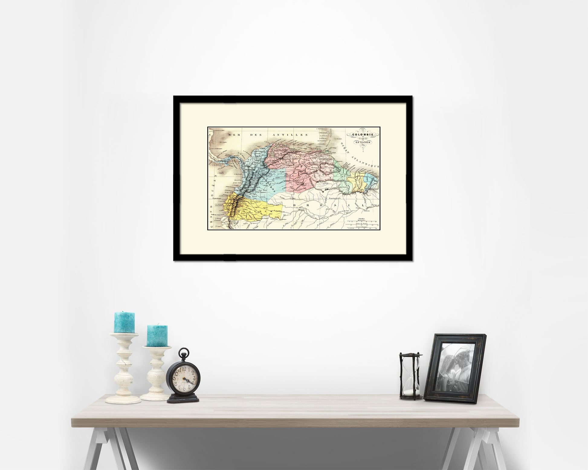 Colombia Venezuela Guyana Old Map Framed Print Art Wall Decor Gifts