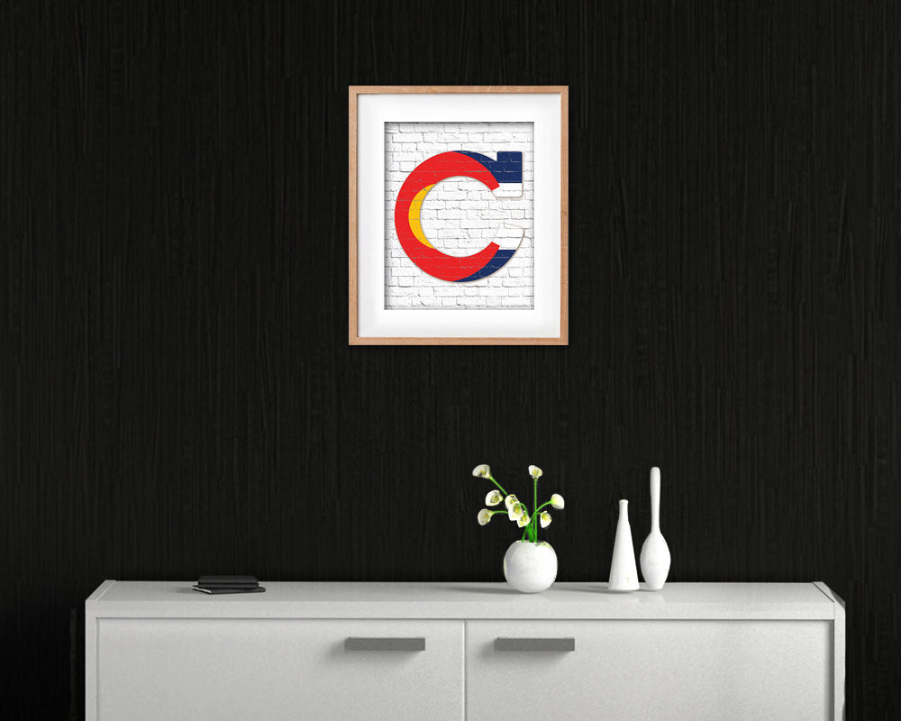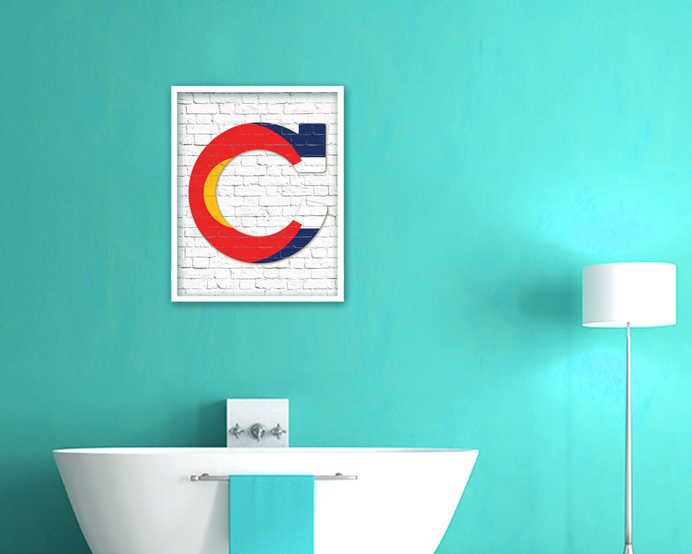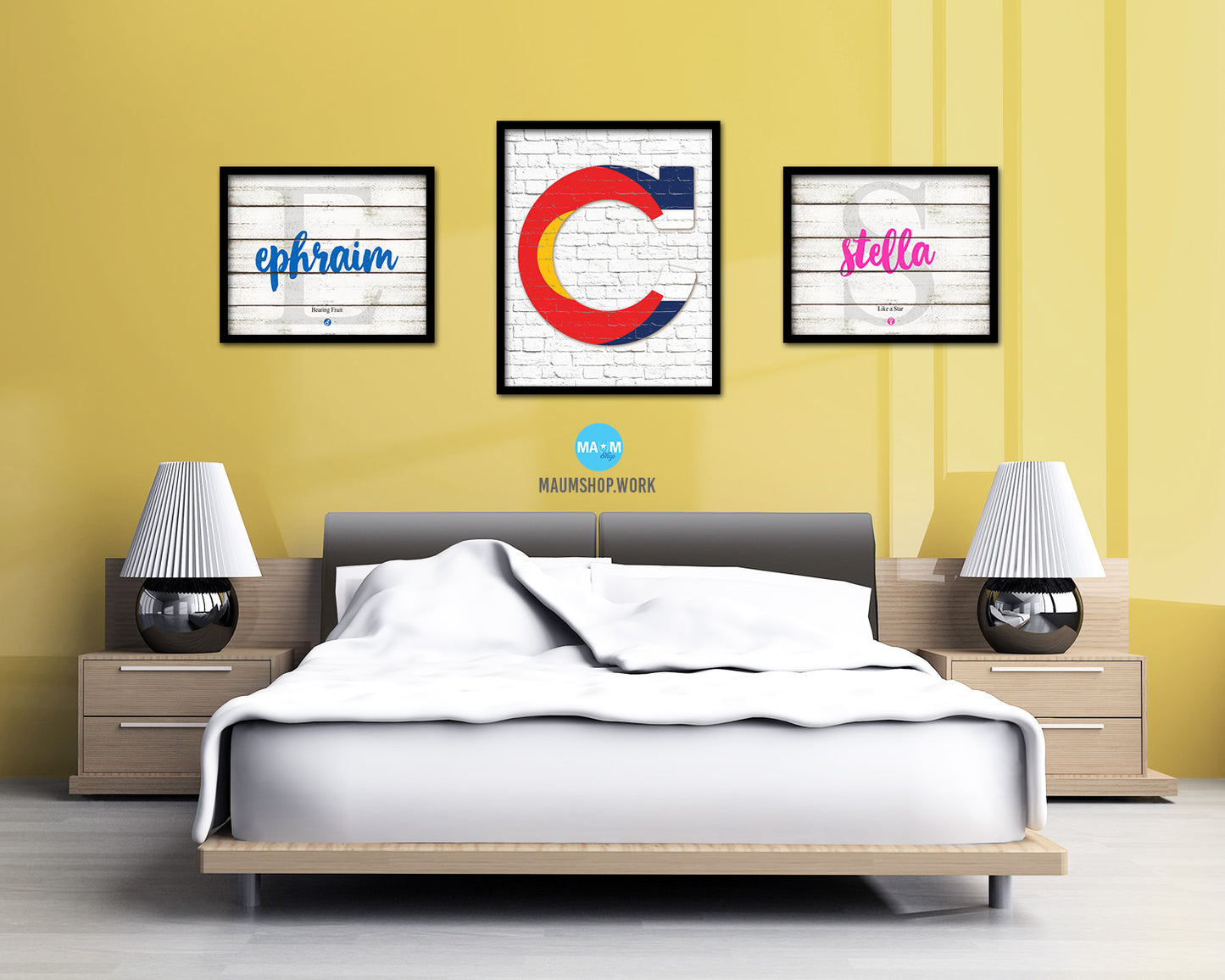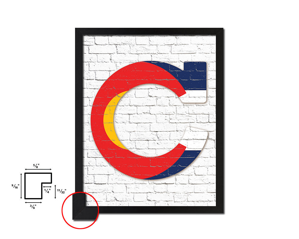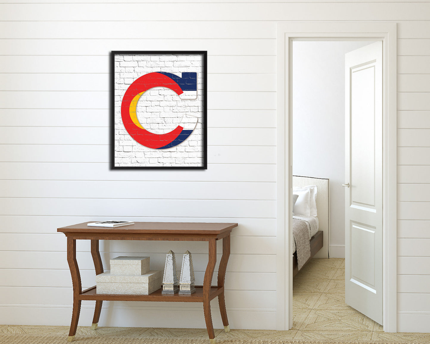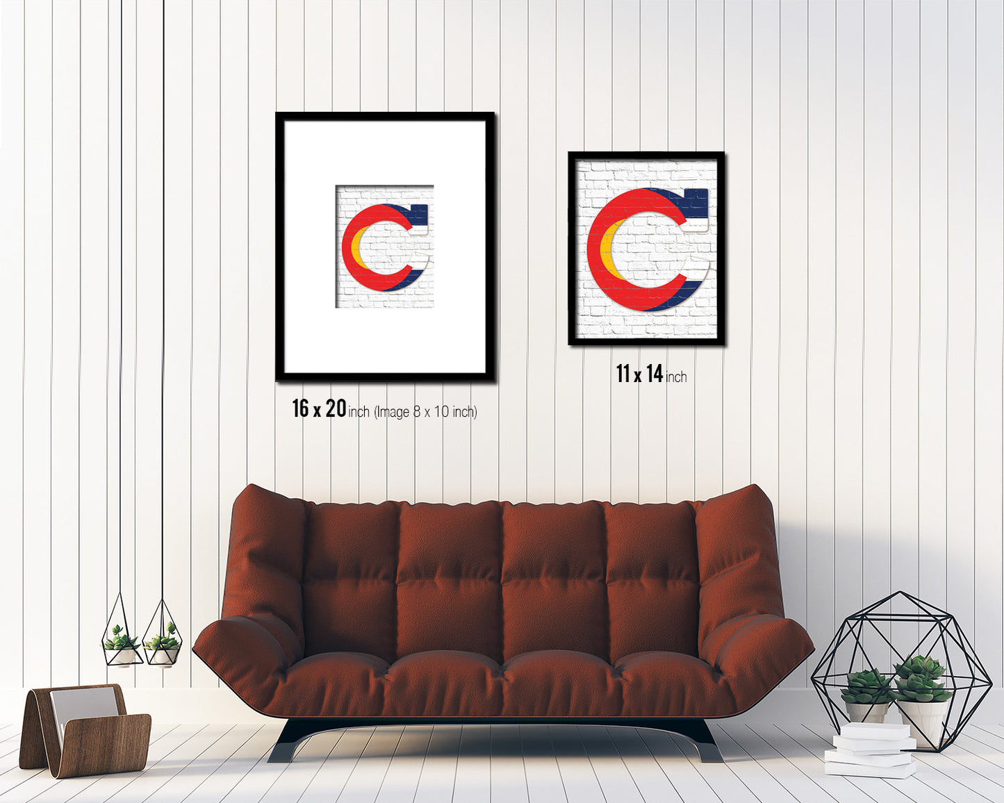 Colorado State Initial Flag Wood Framed Paper Print Decor Wall Art Gifts, Brick