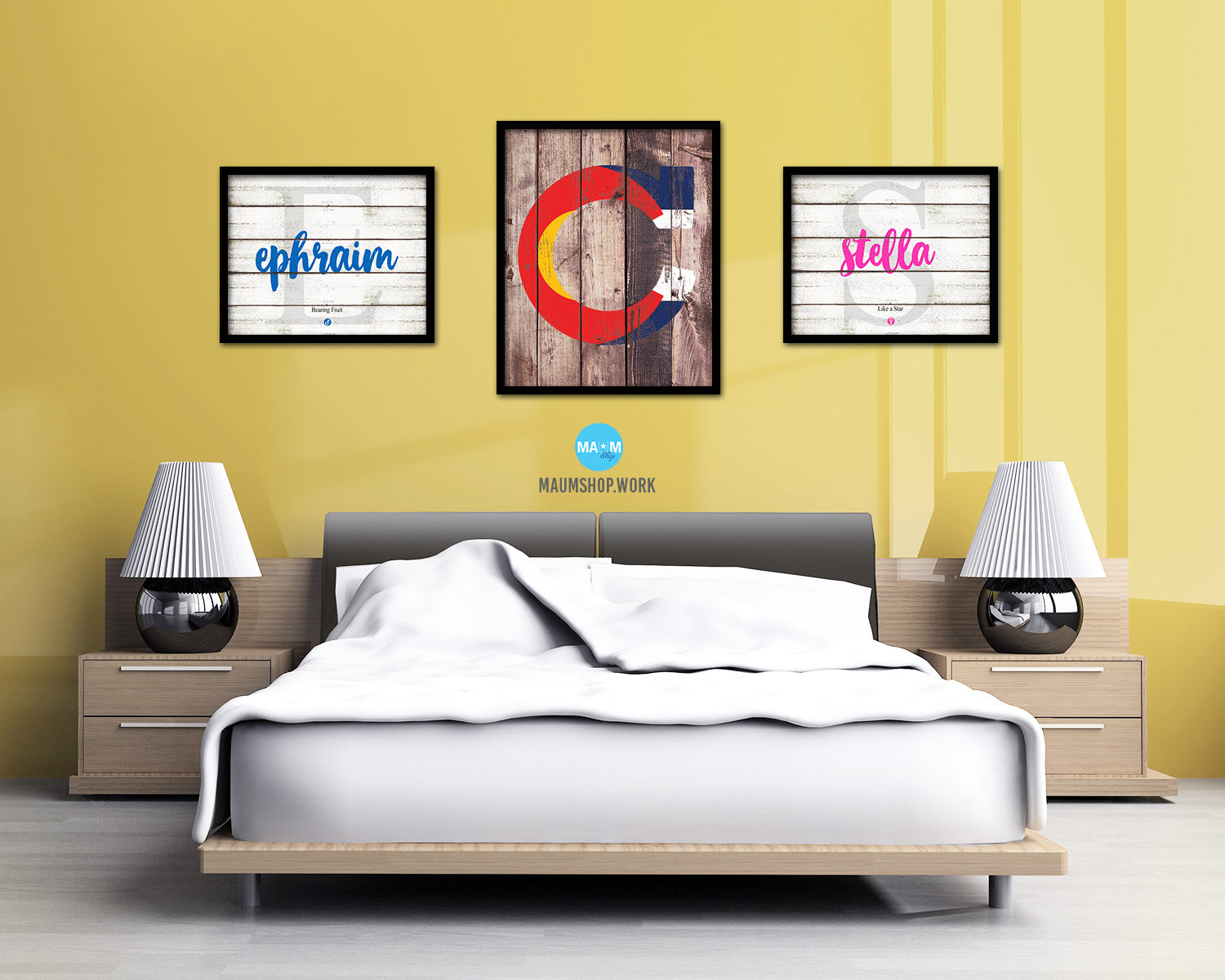 Colorado State Initial Flag Wood Framed Paper Print Decor Wall Art Gifts, Wood