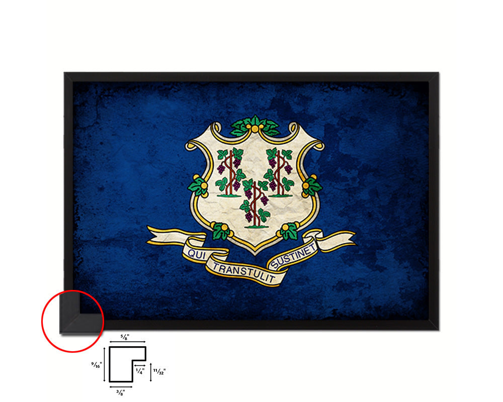 Connecticut State Vintage Flag Wood Framed Paper Print Wall Art Decor Gifts