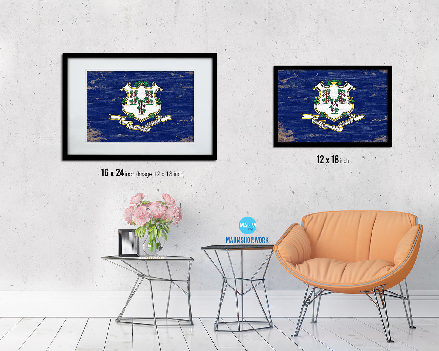 Connecticut State Shabby Chic Flag Wood Framed Paper Print Wall Art Decor Gifts