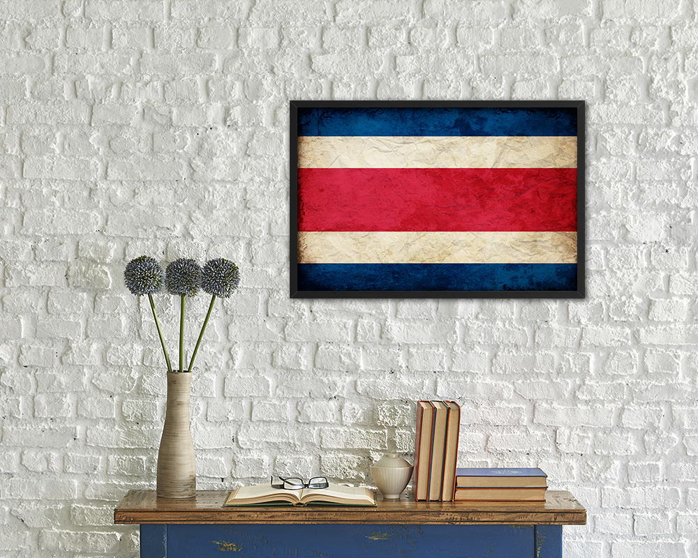 Costa Rica Country Vintage Flag Wood Framed Print Wall Art Decor Gifts